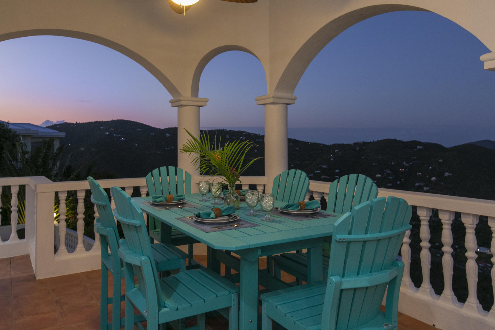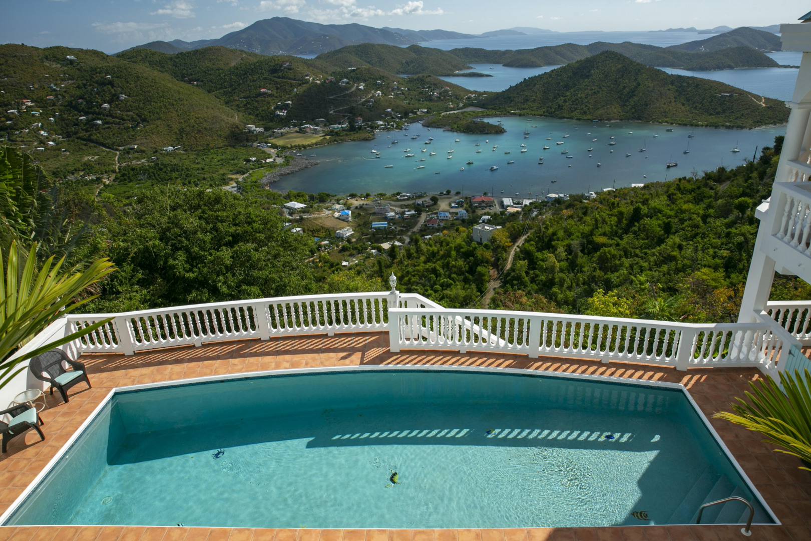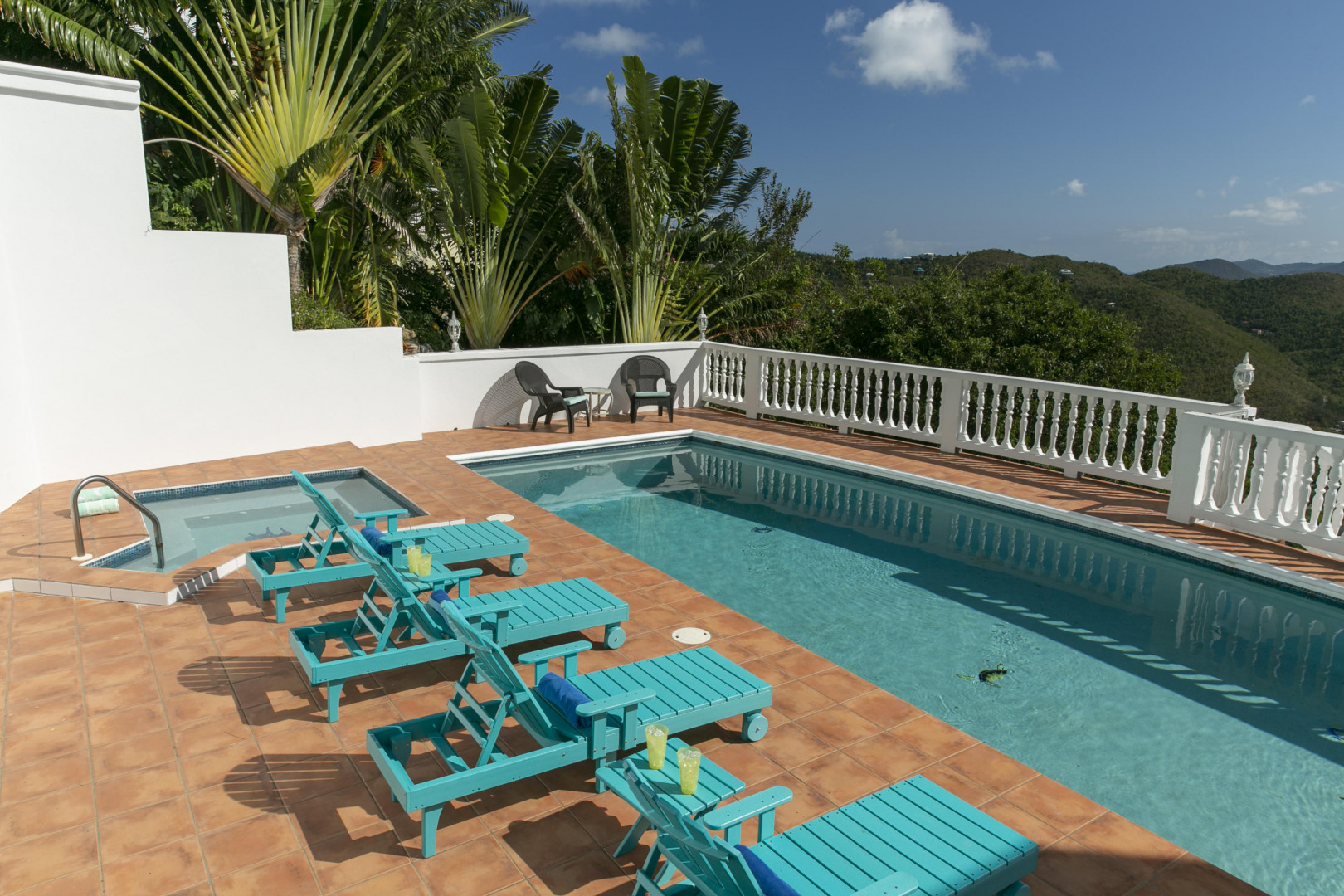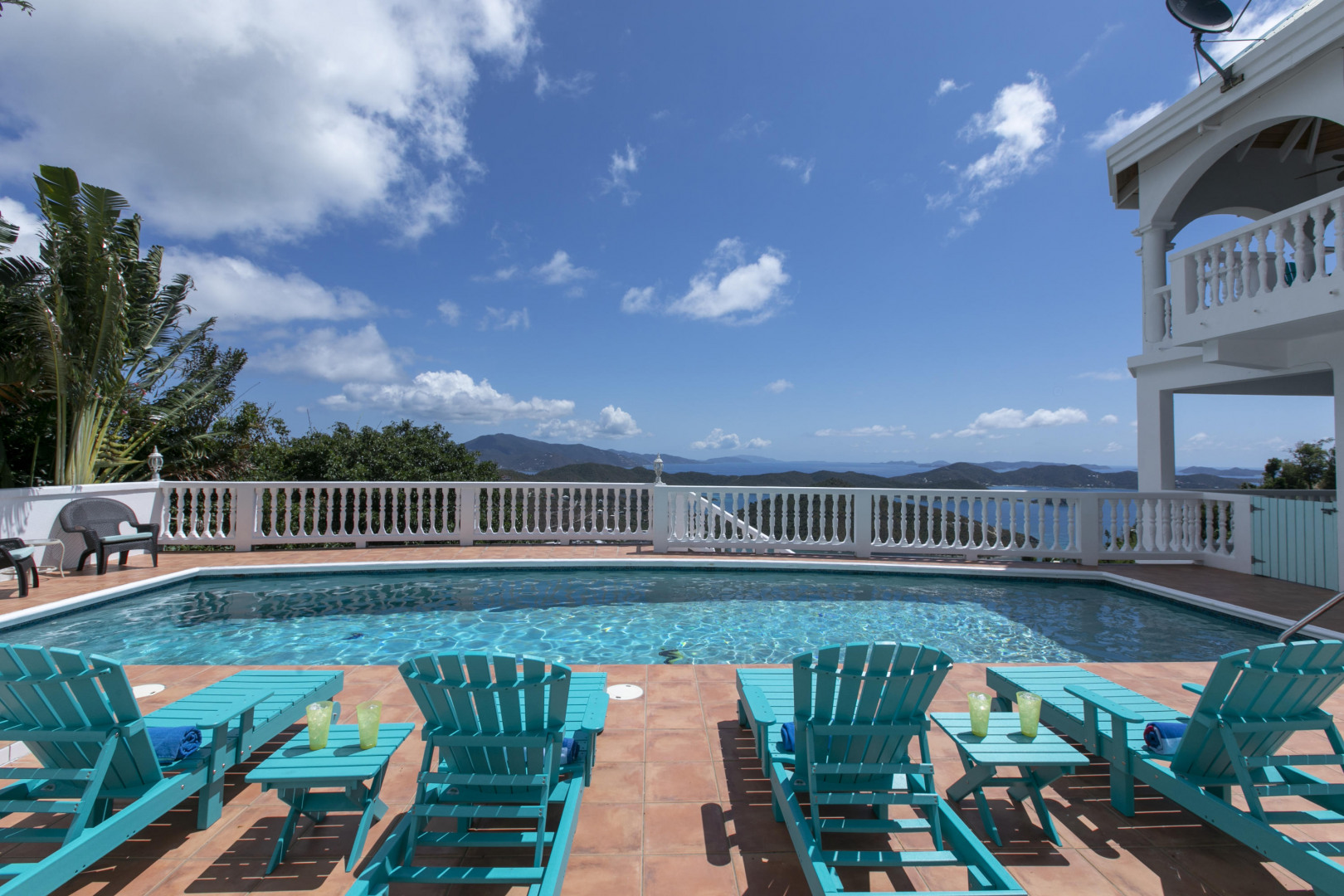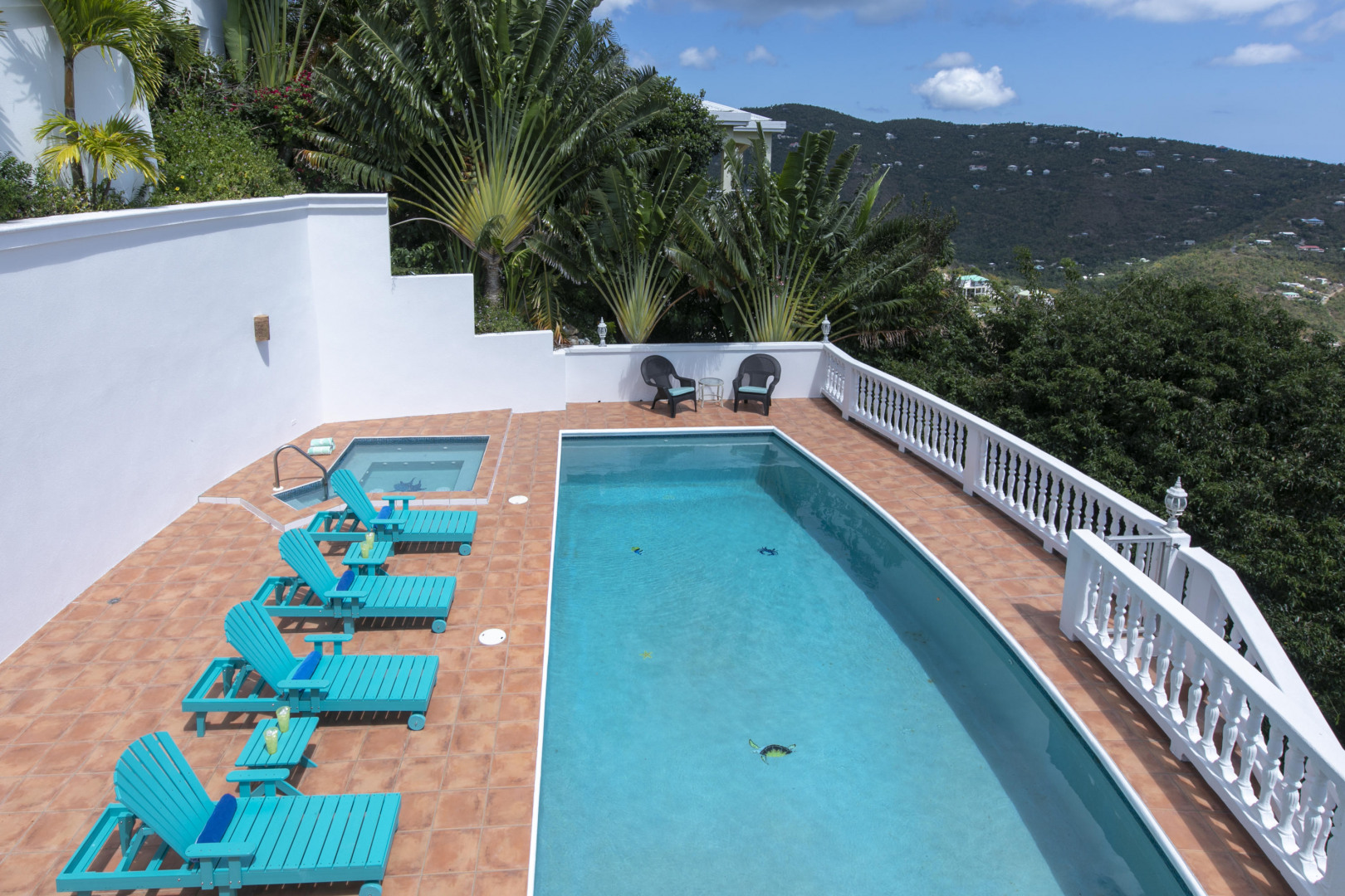 More About 10-25j Carolina, St. John, USVI, 00830The name says it all! ALMOST HEAVEN, with spectacular views of Coral Bay & the neighboring British Virgin Islands from every room. This spacious 2-story masonry & stone villa, with 3 bedroom suites, is a fortress in the hilltops with large viewing porches on each level. The sleek kitchen with stainless steel appliances, granite counters, & cherry wood cabinets opens to the great room & interior staircase. Whimsical floor tile designs throughout with soft Caribbean colors. The breathtaking views, refreshing 40 foot salt water lap pool, and 6 person hot tub make you feel you are almost in heaven.