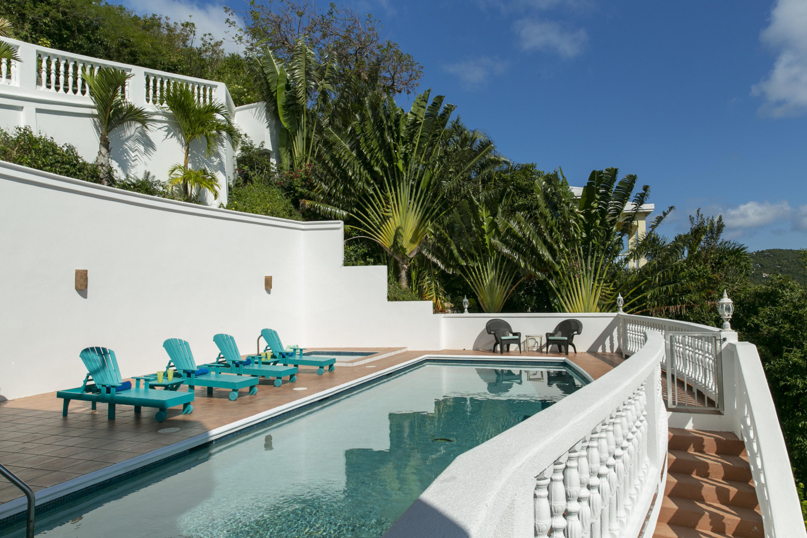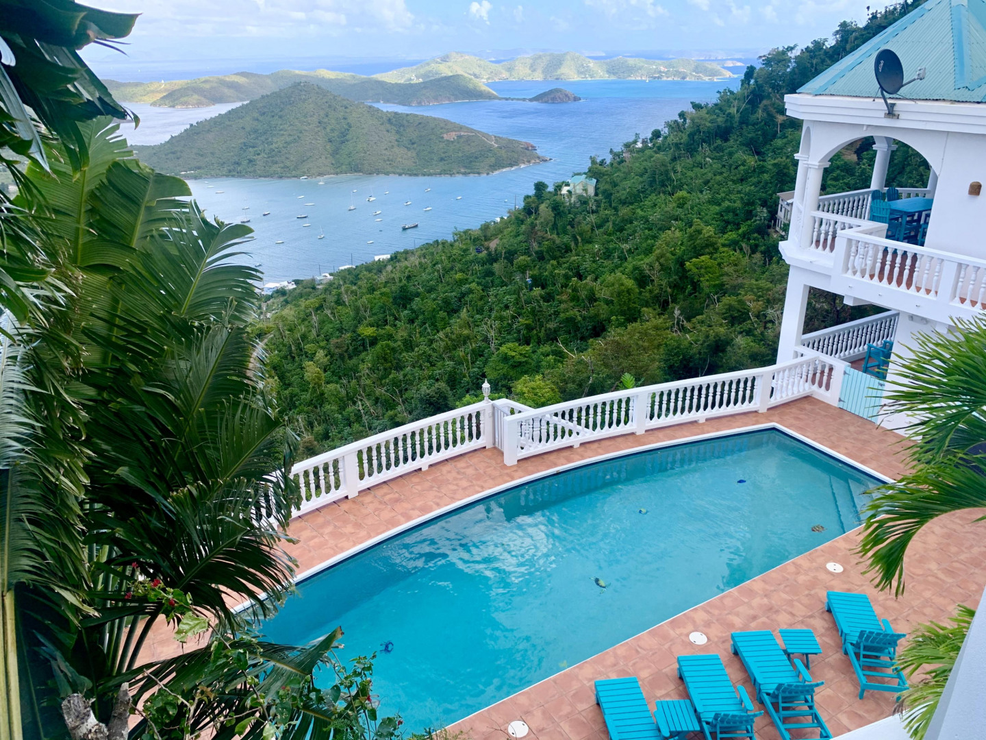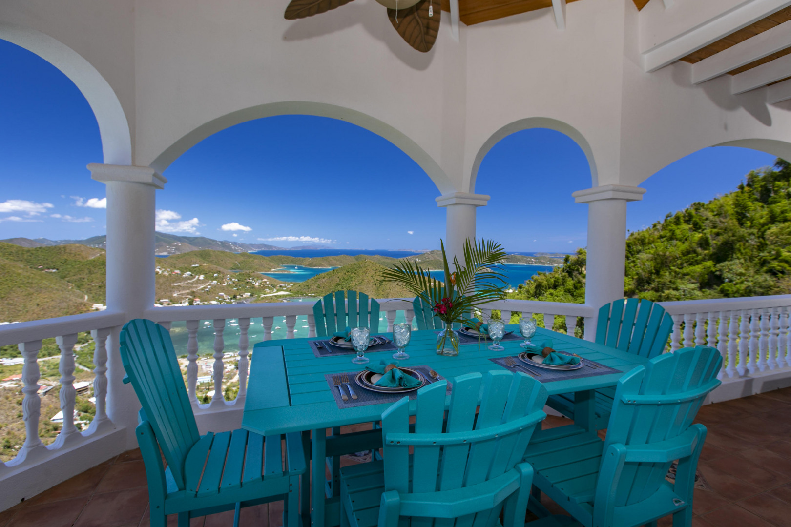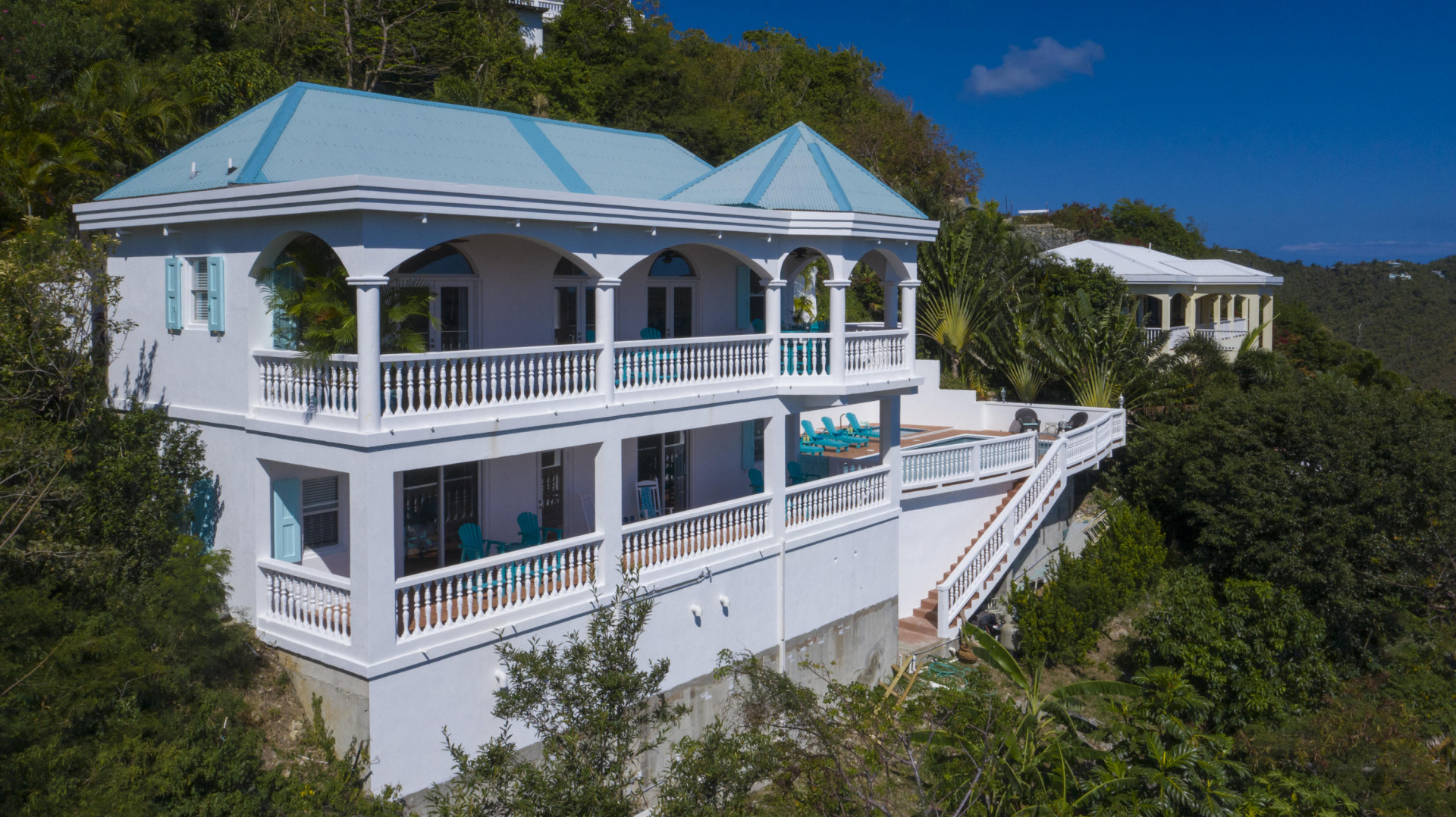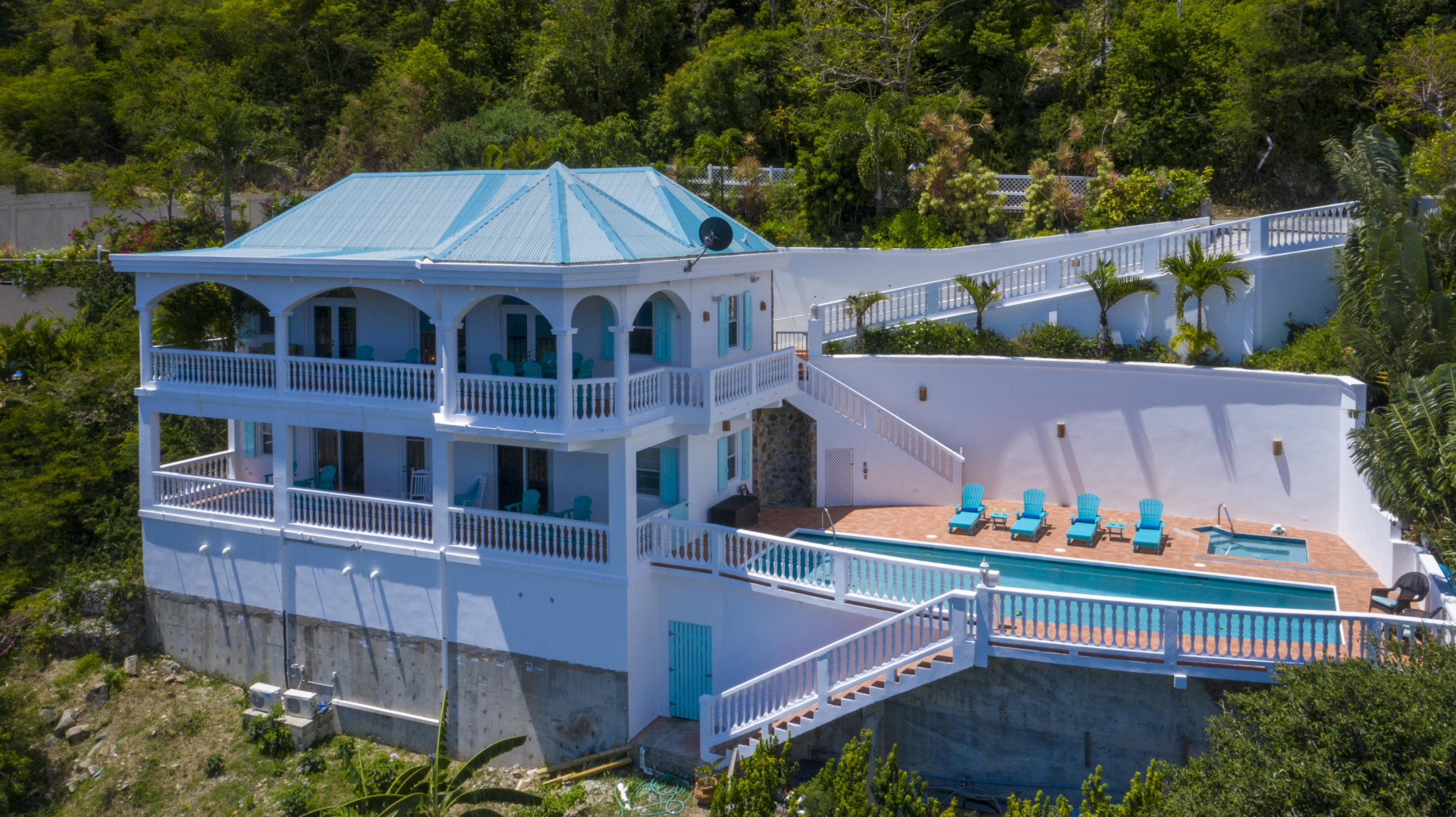 More About 10-25j Carolina, St. John, USVI, 00830The name says it all! ALMOST HEAVEN, with spectacular views of Coral Bay & the neighboring British Virgin Islands from every room. This spacious 2-story masonry & stone villa, with 3 bedroom suites, is a fortress in the hilltops with large viewing porches on each level. The sleek kitchen with stainless steel appliances, granite counters, & cherry wood cabinets opens to the great room & interior staircase. Whimsical floor tile designs throughout with soft Caribbean colors. The breathtaking views, refreshing 40 foot salt water lap pool, and 6 person hot tub make you feel you are almost in heaven.