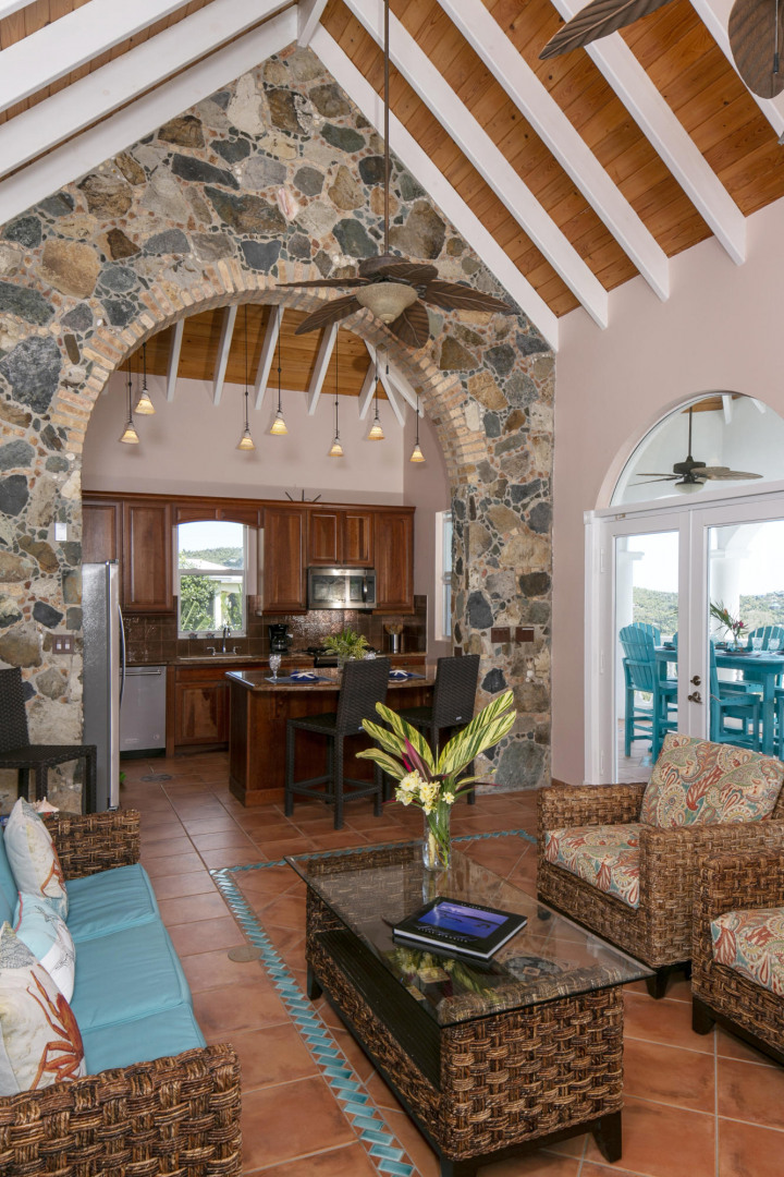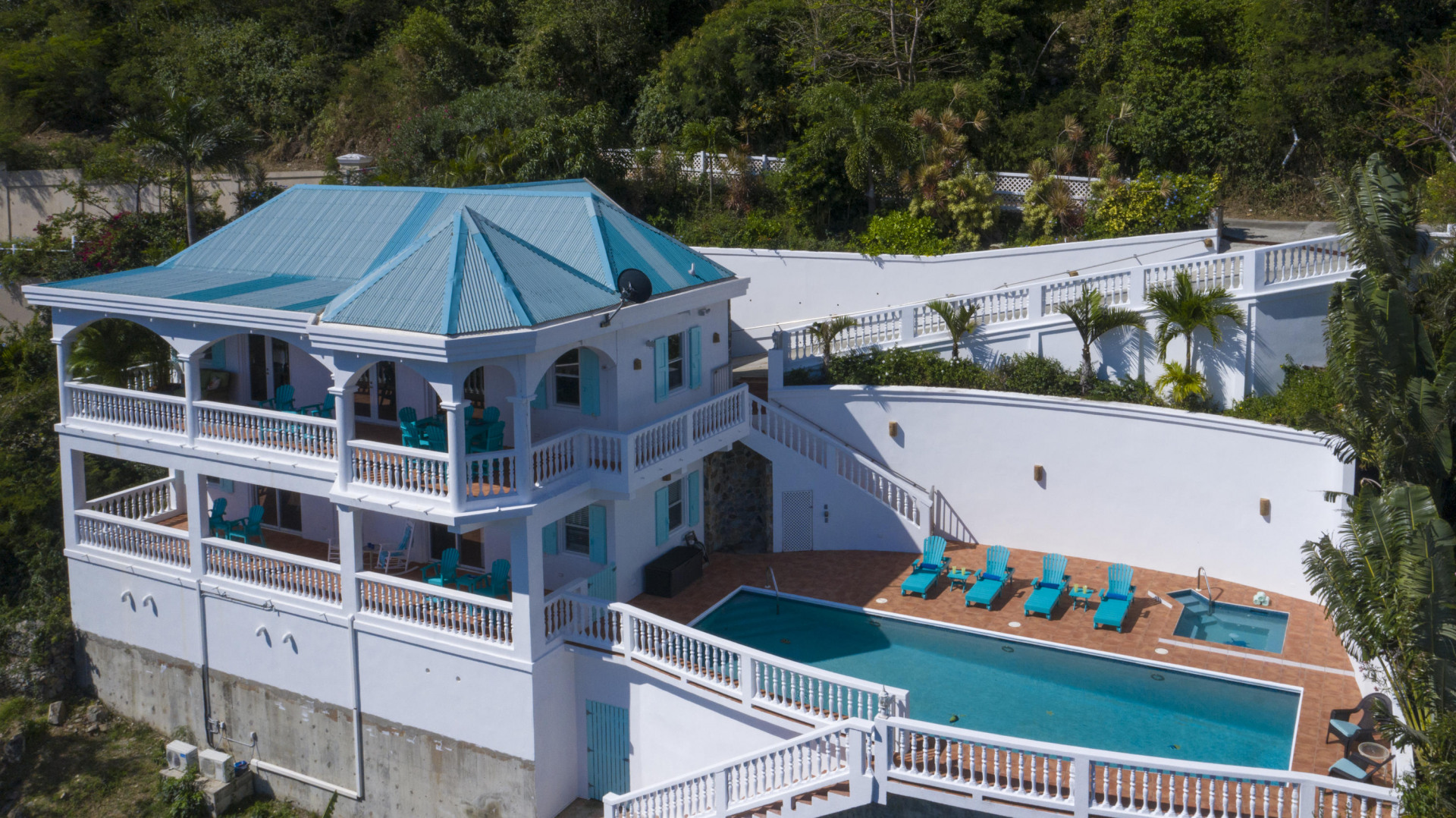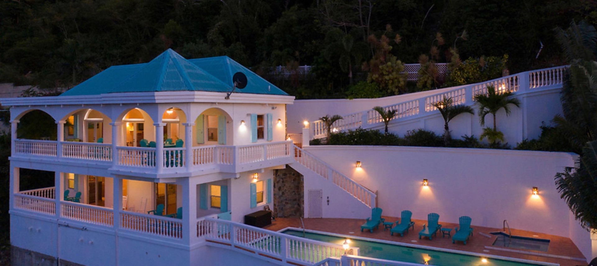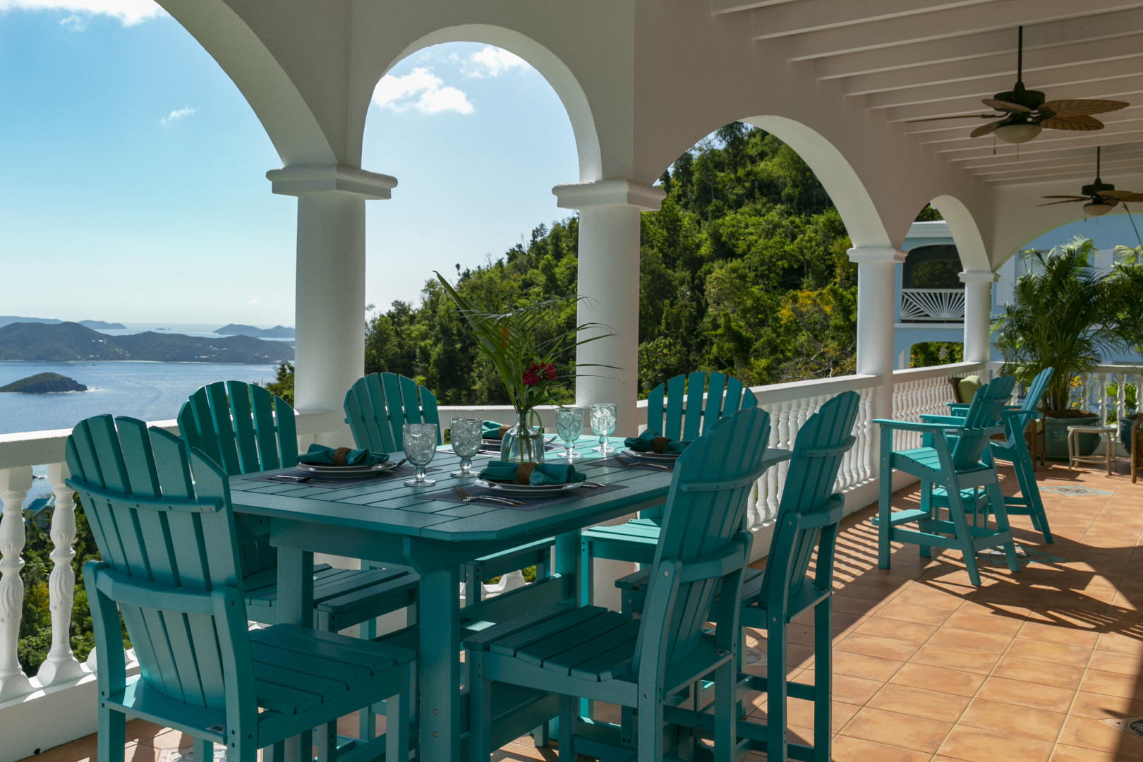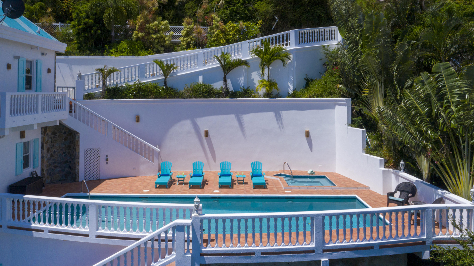 More About 10-25j Carolina, St. John, USVI, 00830The name says it all! ALMOST HEAVEN, with spectacular views of Coral Bay & the neighboring British Virgin Islands from every room. This spacious 2-story masonry & stone villa, with 3 bedroom suites, is a fortress in the hilltops with large viewing porches on each level. The sleek kitchen with stainless steel appliances, granite counters, & cherry wood cabinets opens to the great room & interior staircase. Whimsical floor tile designs throughout with soft Caribbean colors. The breathtaking views, refreshing 40 foot salt water lap pool, and 6 person hot tub make you feel you are almost in heaven.