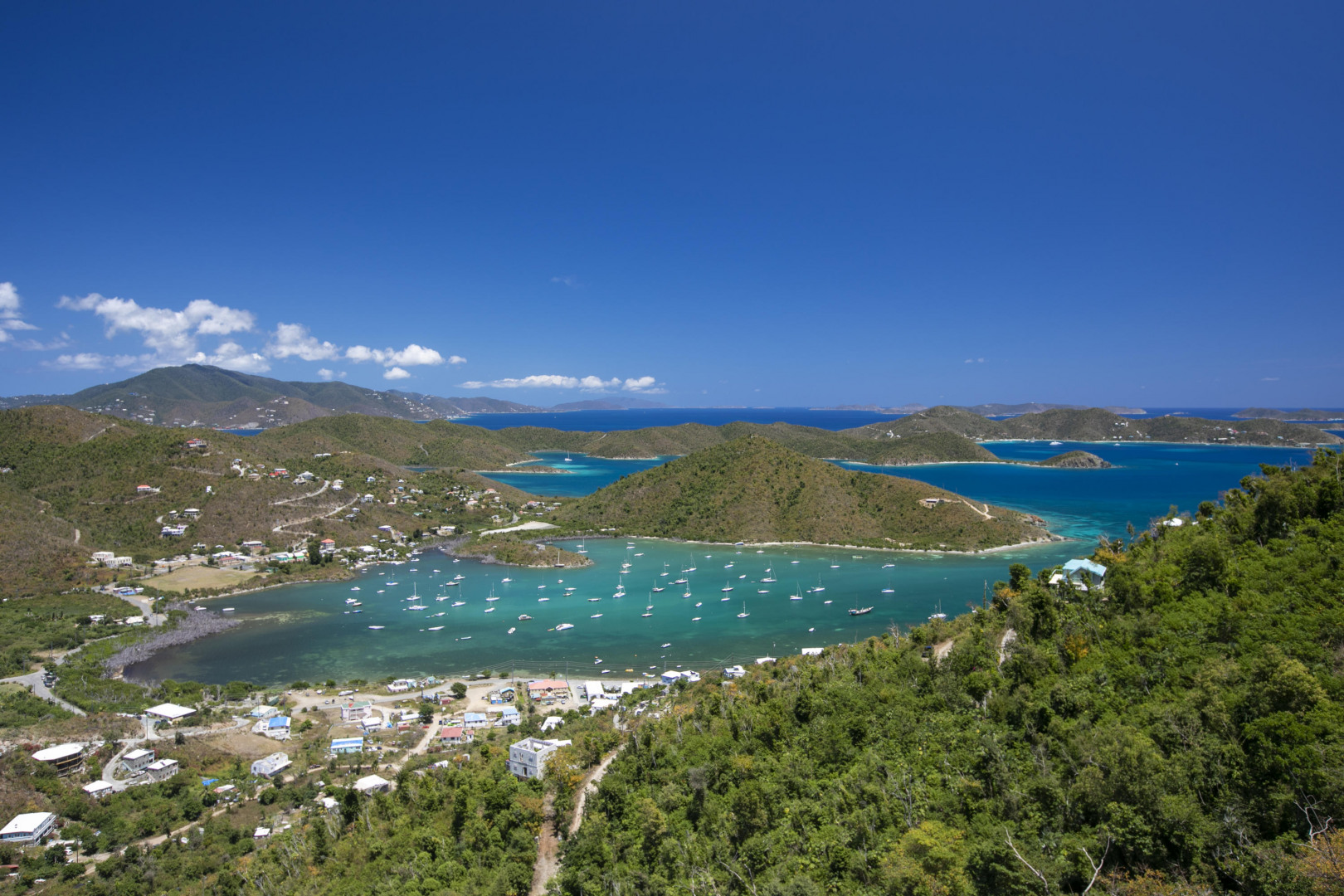 - View: British Virgin Islands, Caribbean, Down Island, East/sunrise, Harbor, Mountain, Panoramic, Valley