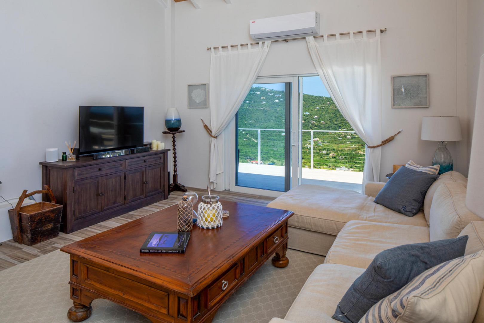 Modern luxury meets coastal casual in this masonry constructed villa with incredible views of Coral Bay, East End, Caribbean Sea & the BVI's. Villa Lair-a'Mar has been completely remodeled top to bottom with a painstaking eye on fine design details and finishes. All new appliances, solar w/2 Tesla Powerwalls, A/C, cabinetry, hot water heater, furniture and lighting/plumbing fixtures leave nothing for the new owner but to enjoy. This home boasts an air-conditioned open floor plan with modern kitchen & large seating area for entertaining or lounging. Each large, air-conditioned king suite has direct access to the expansive deck area and pool. The single level floor plan provides easy access to all this villa has to offer and the oversize drive with turn-around space is an island rarity.Villa Lair-a'Mar represents a rare opportunity for an as-new, stunningly designed and decorated vacation or short-term rental home where every detail has been attended to. All of the thoughtful upgrades you would want have been added including 6.5 KW solar with net-metering and 2 Tesla PowerWalls, split A/C in each room, energy efficient Big-Ass Fans, UV water treatment, all new bathrooms, new designer chef's kitchen and stainless-steel appliances, including a garbage disposal, with quartz countertops, new hot water heater, new roof and much more. Prior to the complete remodel this villa was a highly successful short-term rental (FKA Villa Fun & Contentment). Lower level of the property provides opportunity for additional expansion of living space or stand-alone apartment. Seller is licensed Realtor.