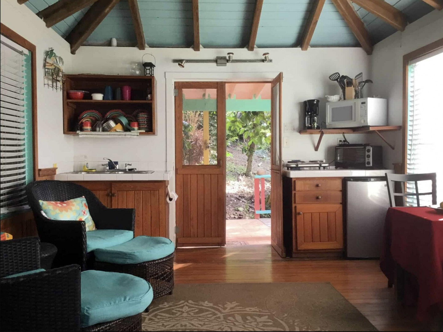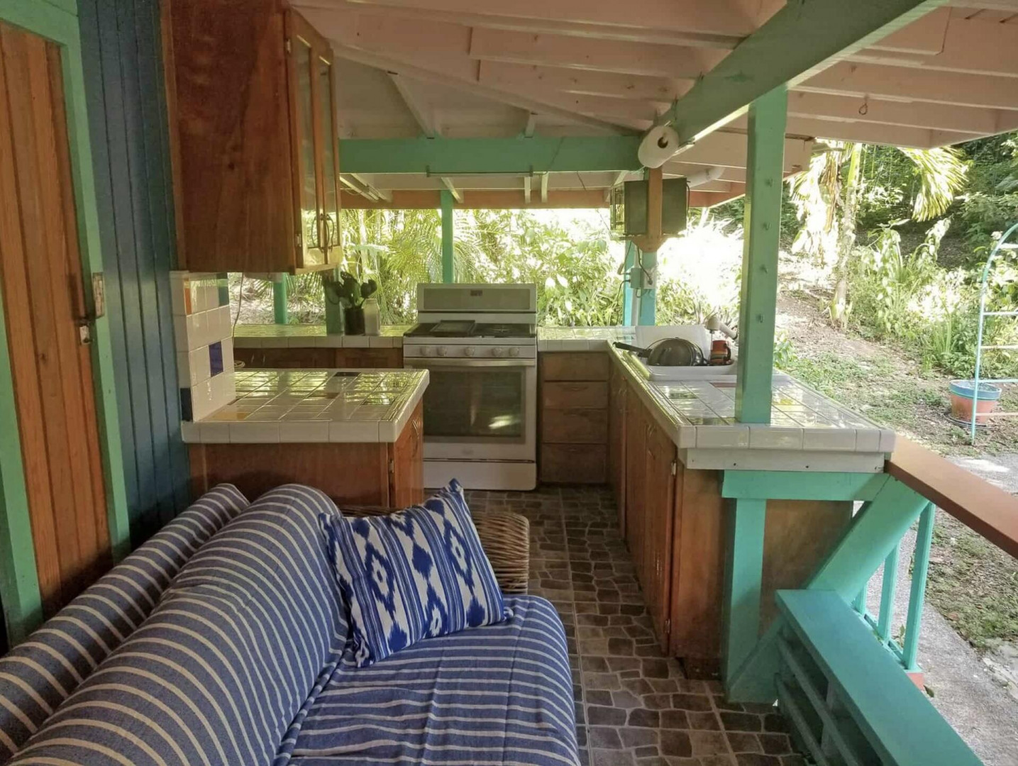 Peaceful Cottages, situated on a private, fenced-in location on Gift Hill. Short drive from Cruz Bay. The compound has two large studio cottages and a one bedroom Keepers Cottage. Successful short term rental. Live on property and rent out the cottages for additional income, or enjoy the entire property privately...the possibilities are many.The Keepers Cottage has a Living/kitchen, bathroom/shower, bedroom, and a workshop (which can covert to small bedroom). Also, a covered workshop at the rear. A second kitchen is located in one of the cottages. Each cottage has outdoor living areas and decks. All surround a peaceful garden area. -
