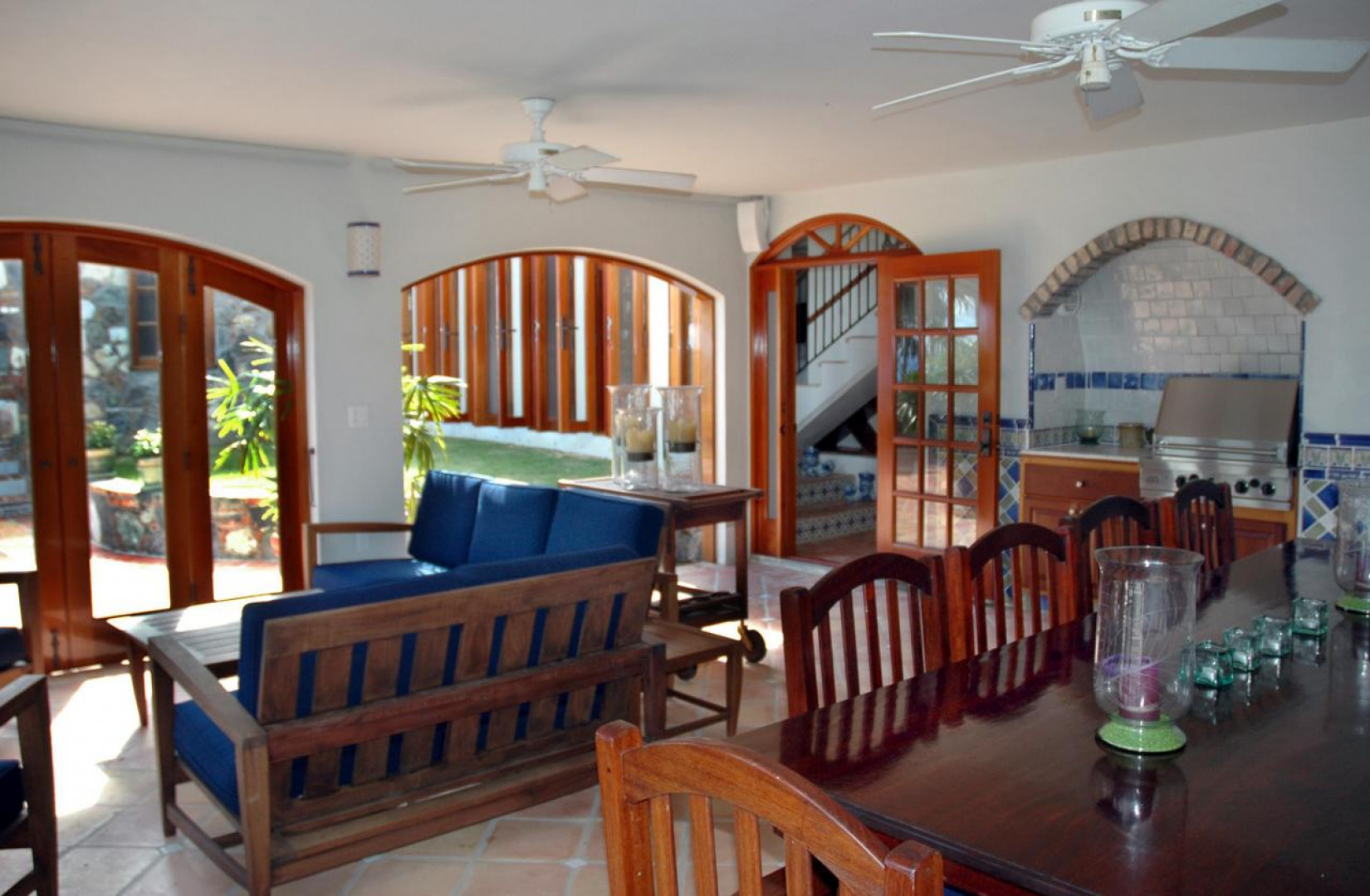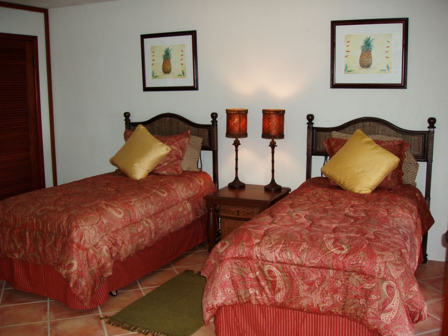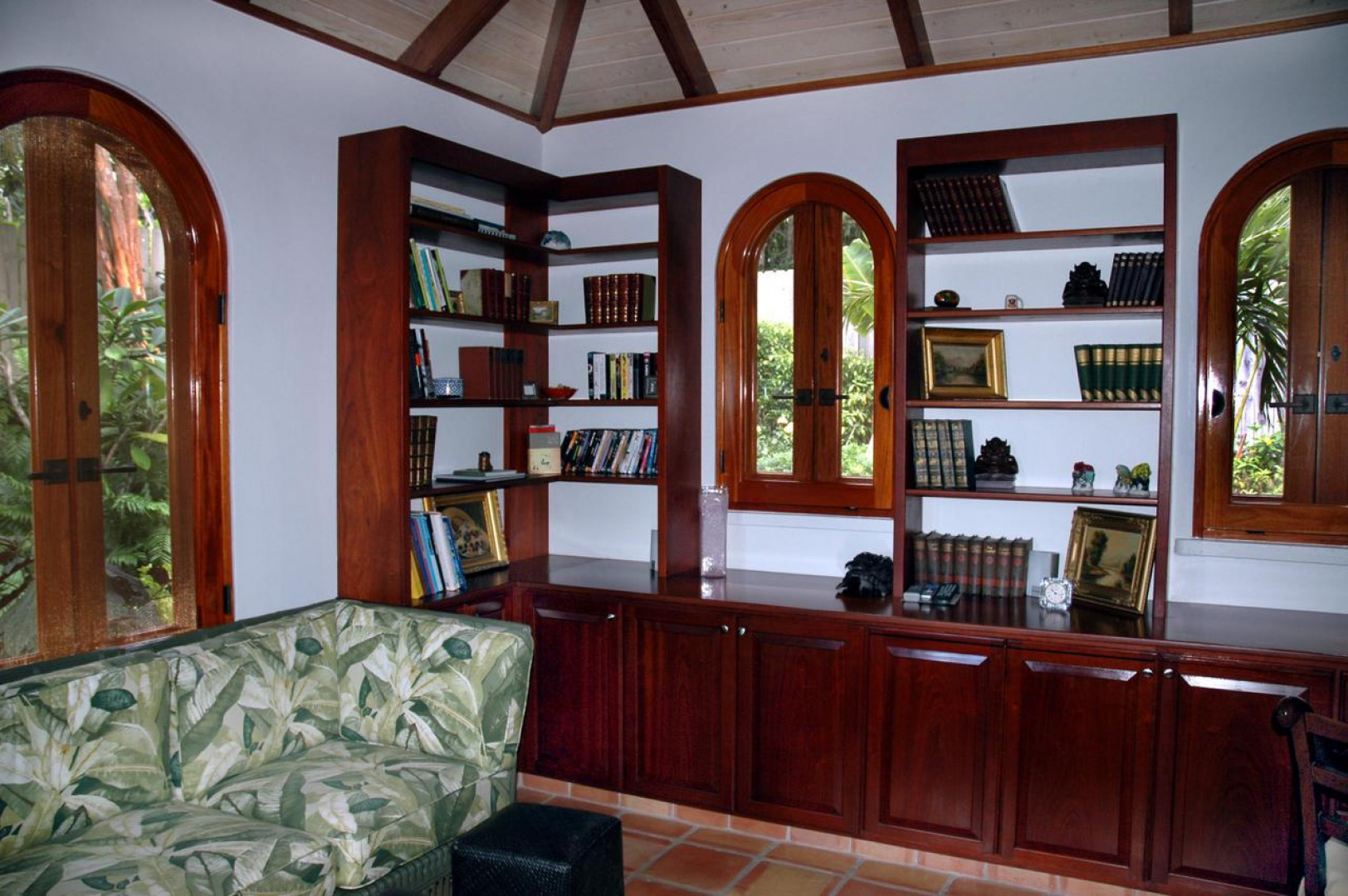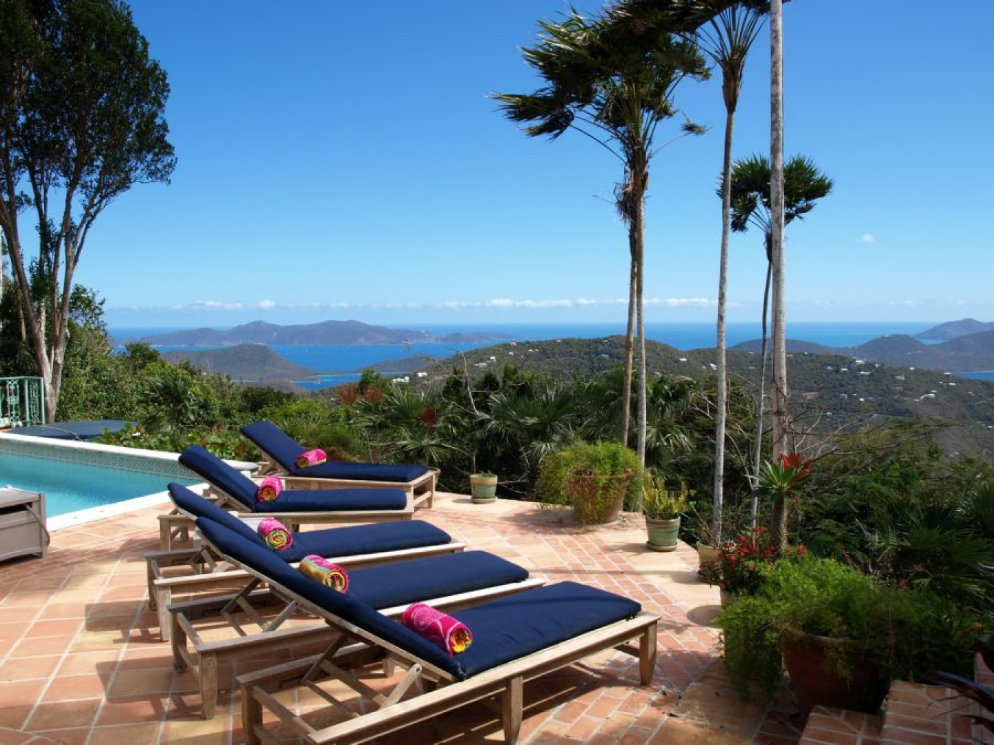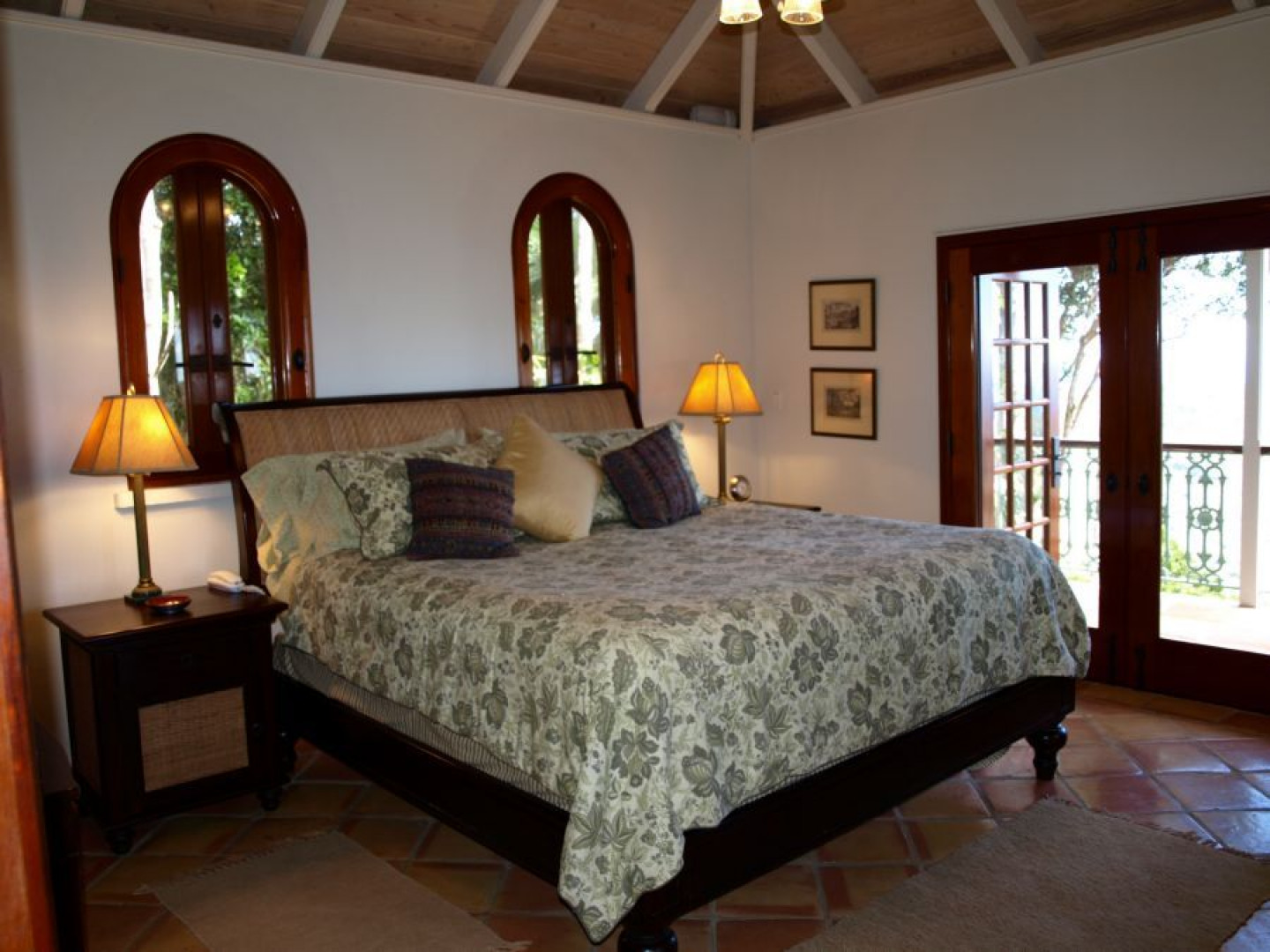 Bordeaux Mountain House enjoys a spectacular mountain top location with cooling breezes, exceptional views, privacy and tranquility, yet this custom designed villa is only a short ride from Cruz Bay, Coral Bay and the north shore National Park Beaches. This gated estate residence features an elegant stone and masonry main house plus a large guest house all in a lush tropical setting with abundant indoor and outdoor living space, an in-ground pool and oversize spa all on level terrain with easy access and ample parking. See SUPPLEMENT and DOCUMENTS for more details.NOTE: THIS SUPPLEMENT ALSO AVAILABLE AS PDF DOCUMENT SUITABLE FOR PRINTING. CLICK ON DOCUMENTS LINK TO VIEW. Bordeaux Mountain House: 10-8-4 Carolina Additional features, benefits and amenities... Custom designed by the builder as his family's private, gated compound - this home has a warmth and appeal that sets it apart from the typical vacation villa. Wooded site, gentle terrain, offers tranquility and privacy with expansive views of Coral Bay, the east end of St. John, the Sir Francis Drake Channel and many of the British Virgin Islands, all from an elevation of nearly 1000 ft. Conveniently located in the center of the island, about 15 minutes from Cruz Bay, 10 minutes to Coral Bay and about a 10-15 minute drive to the National park beaches on the north shore. Beautiful hand crafted native stone work, accented with Chicago brick, is used tastefully throughout much of the main house and for the lower level of the guest cottage. Gourmet kitchen with Viking gas stove, polished granite counter-tops, stainless steel appliances, custom cabinets, microwave, built-in wine cooler. Second great room with dining and living areas on the lower level adjacent to the pool deck. Custom mahogany doors, windows and cabinetry throughout the main house. Stone hearth in the upper great room is a fully functional fireplace for cool winter evenings. Wraparound covered verandahs with decorative wrought iron railings. All rooms in the main house, guesthouse, pool, sundeck and outside areas are wired for sound (Bose speakers). AM/FM, satellite radio, 6-disc CD player and Ipod connection available. Heated pool and spa with expansive tile deck cool to the touch and low maintenance. Fully equipped den/office/media room could be converted into another bedroom. Separate guest cottage with two bedrooms up and full bath; Lower level recreation room could become another full sized bedroom. Addition of full bath on existing slab is quite feasible. -