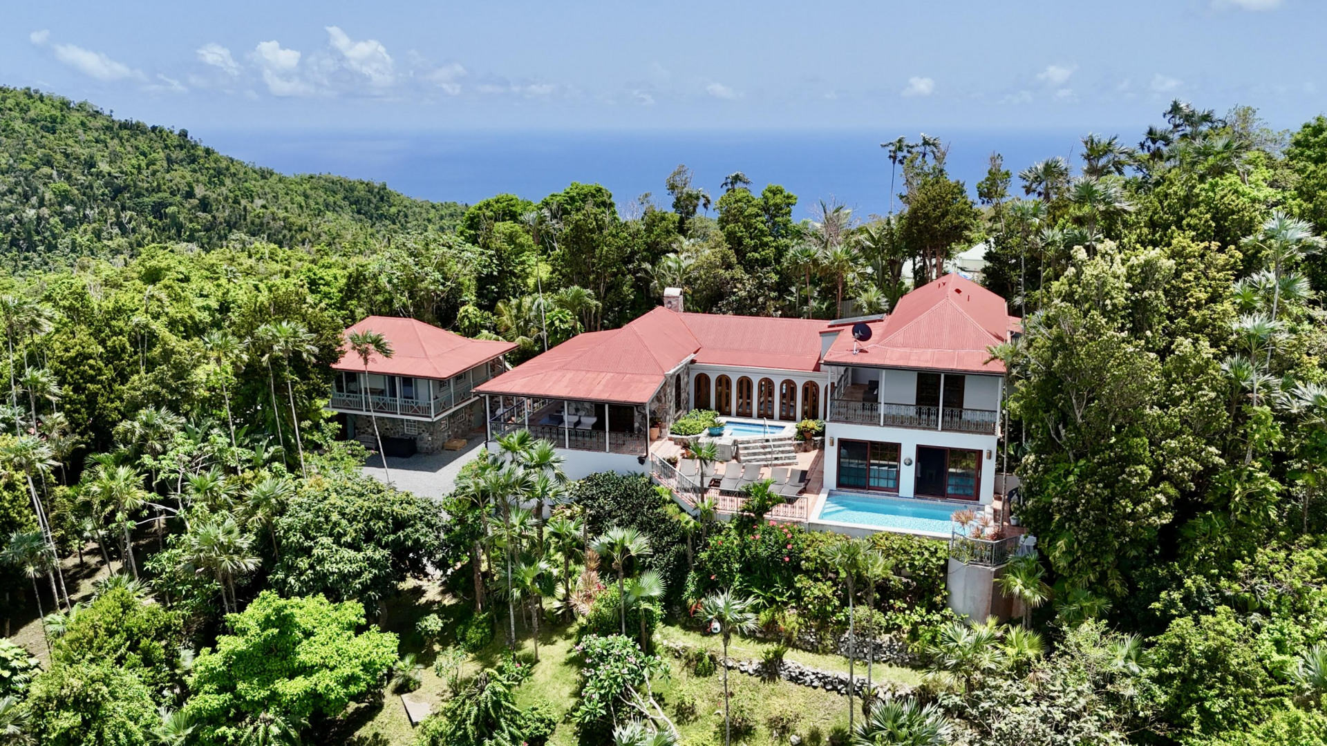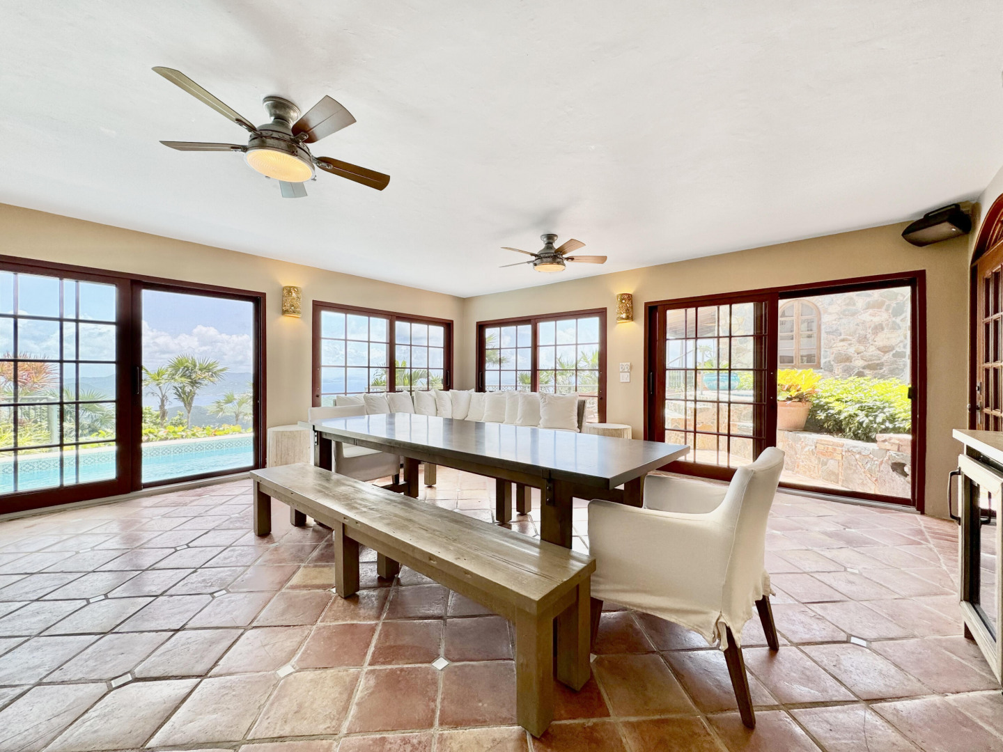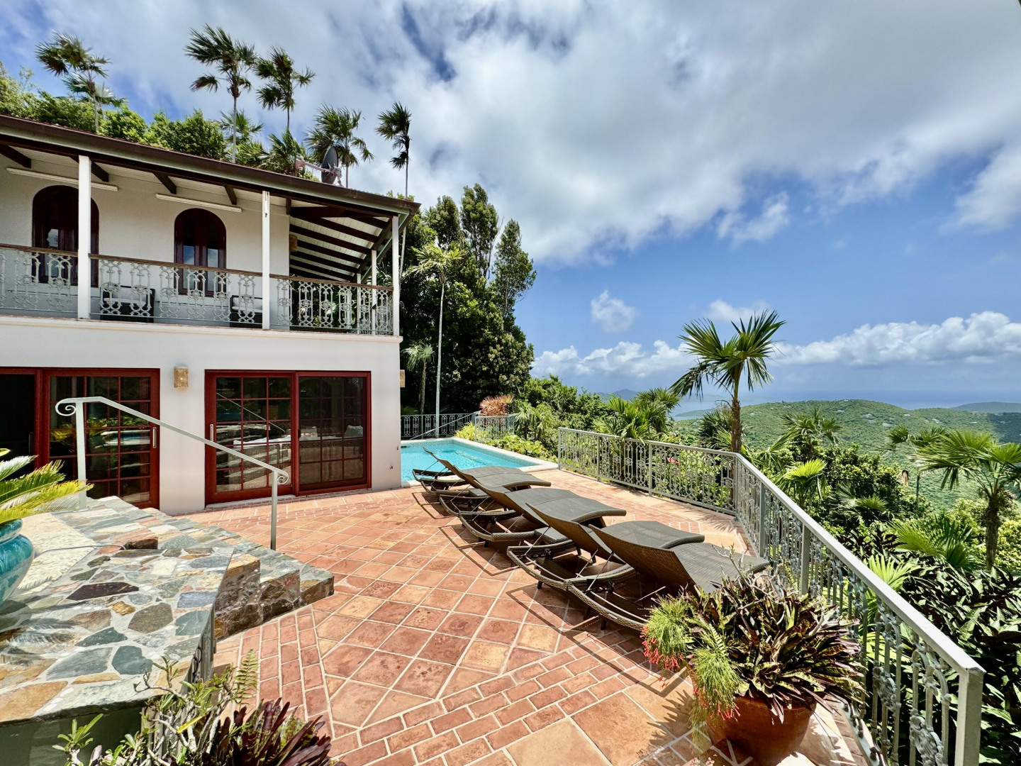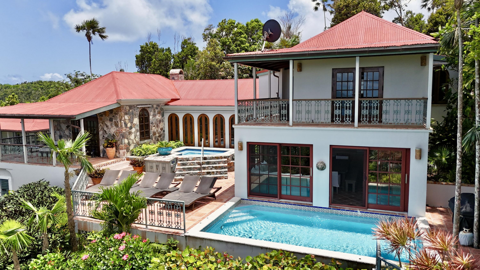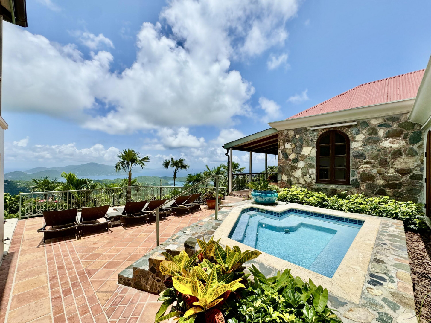 Magnificent villa at Bordeaux Mountain. This solid masonry home offer 3 bedrooms and 3 en-suite bathrooms and a 3 Bedrooms 2 bath Cottage. Perfect for large families, this 6 Bedrooms 5 Bath property comes with a fully remodeled kitchen with top of the line stainless steel appliances, a Jacuzzi, a swimming pool and a pool entertainment house. You'll appreciate the stone work throughout the home. This gated property will have you enjoy the beautiful Coral bay & down island ocean views facing east to capture the cooling trade winds. This compound features two separate structures, ample parking, and is only 7 minutes from Maho Bay and the North Shore Beaches & National Park, and only a short drive to Coral Bay & Cruz bay. Perfect as an investment property or as a family home! -