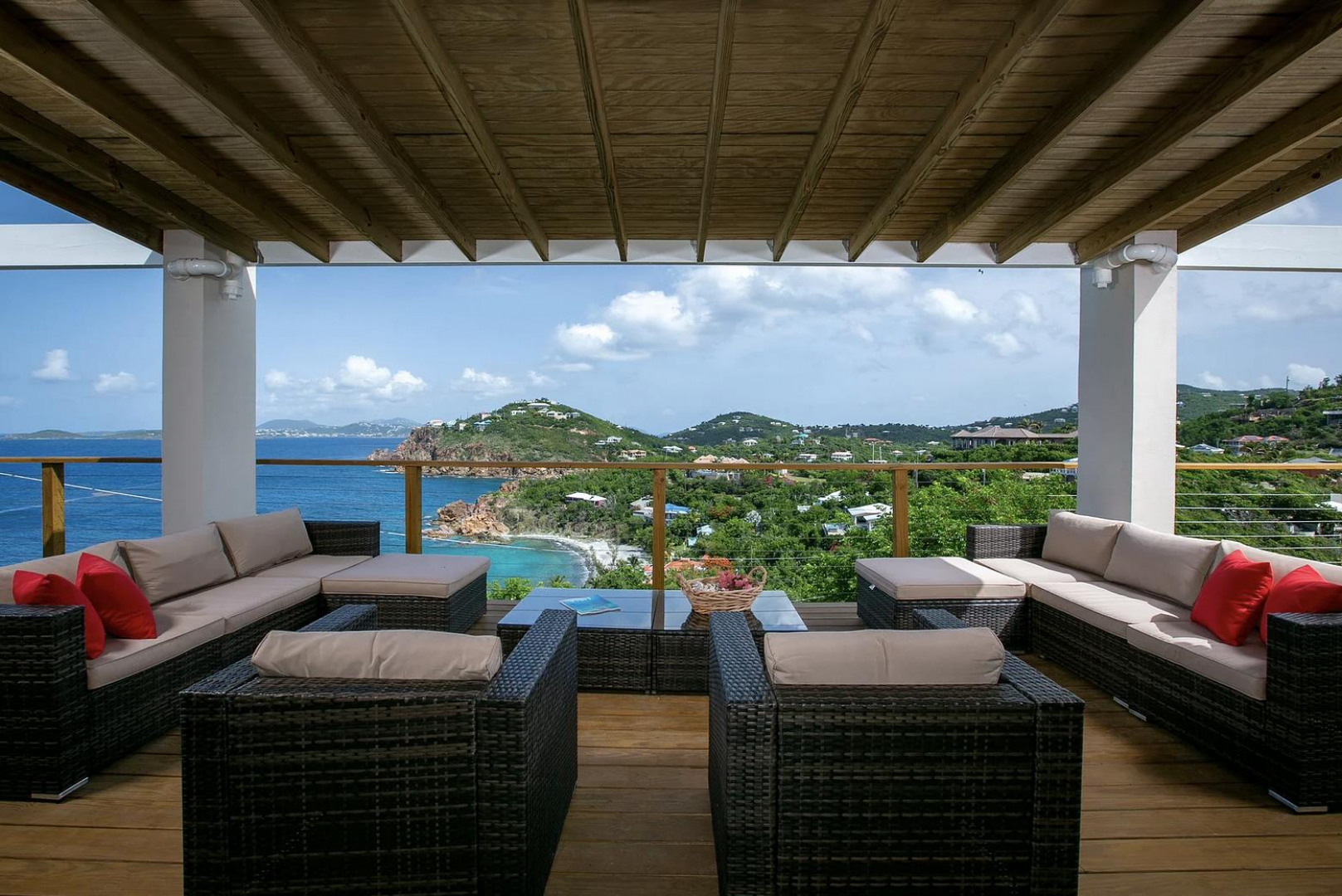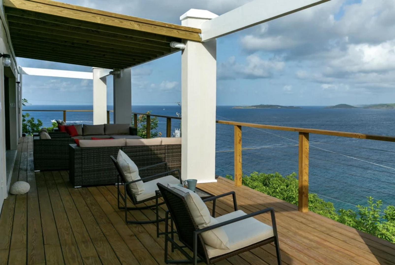 As seen on HGTV's House Hunters International, AVONTUUR VILLA is a perfect escape into the paradise that is St. John with dual water views! This extremely successful vacation rental offers a flexible layout with opportunity for multiple units. Resting high on the hilltop on a full acre of land in desirable Chocolate Hole, this breathtaking villa is just minutes from Cruz Bay's beaches, shopping, and the ferry to St Thomas & BVI. Completely renovated in 2019, with over 3,000 sq. ft. of interior living space and over 5,000 sq. ft. of outdoor space, unparalleled panoramic views of Hart Bay, Dever's Bay and Chocolate Hole, Avontuur Villa brings together true island decor with modern amenities to offer the full experience of St John.