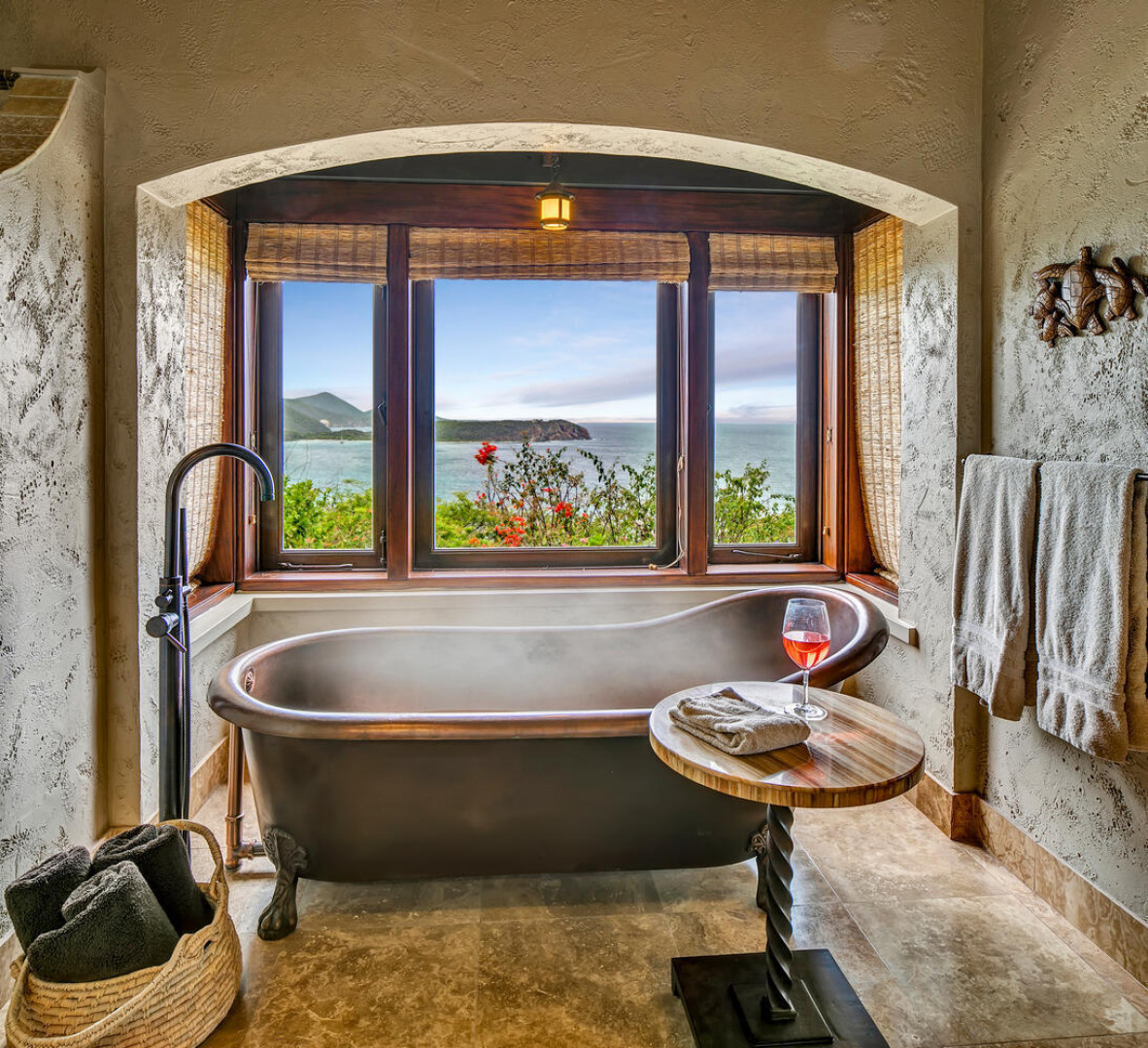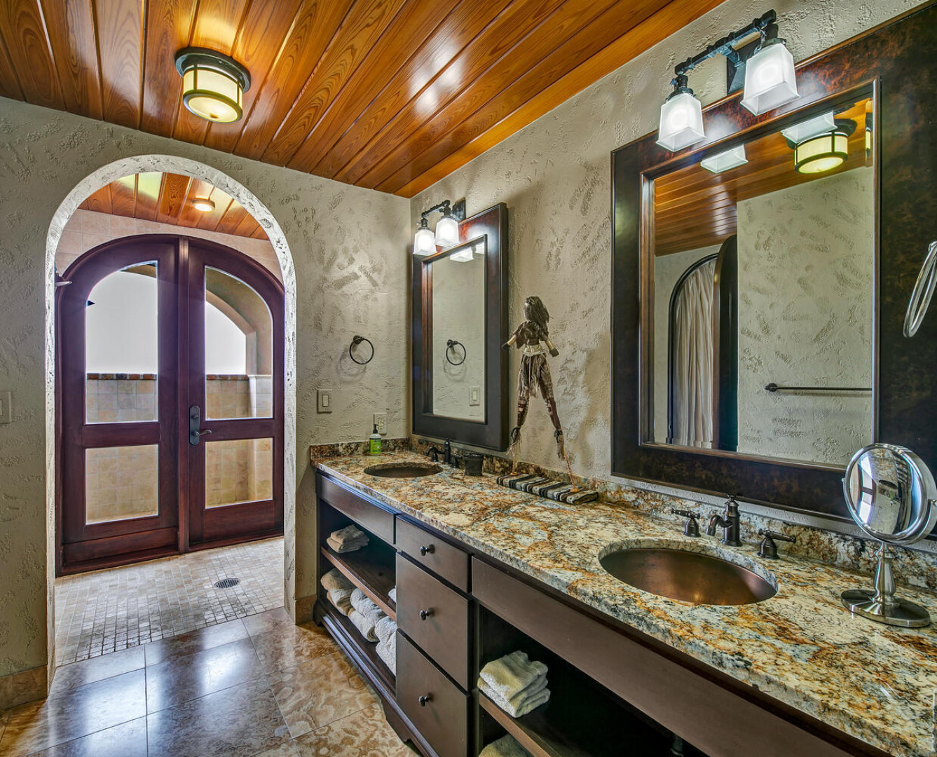 Each of the four spacious bedrooms features its own ensuite bath with granite countertops, double vanities, interior and exterior tile and stone showers. In the master bedroom, you'll find the added touch of a freestanding copper bathtub in a window-framed with a stunning water view.