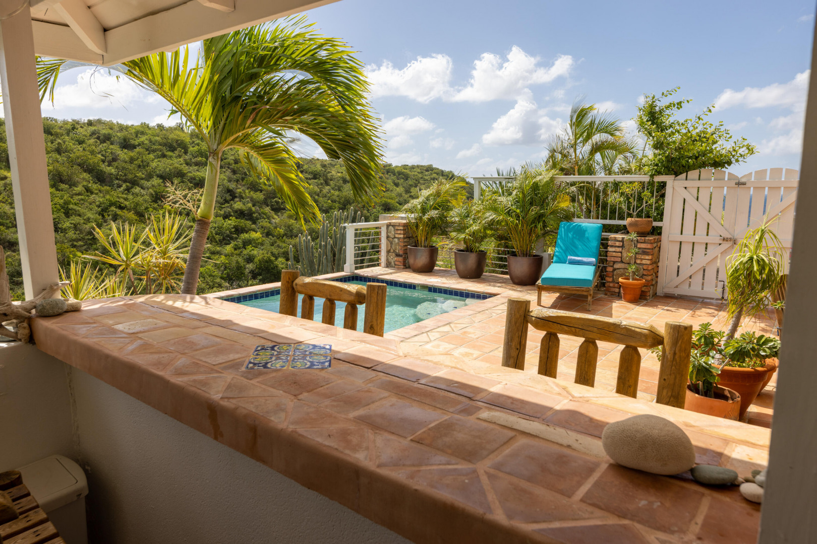 Take your pick of 4 beaches within walking distance from Villa La Sirena! Located in quiet Estate Mandahl, LaSirena offers 2 bedrooms & 3 baths plus a sleeping loft. Recent improvements include a beautiful new sun porch, new windows & doors, new roll down shutters, new a/c units & newly refinished kitchen concrete counter tops & appliances. The saltwater masonry pool is surrounded by a tiled deck & covered pool cabana/bar & lush landscaping. Bothupper & lower levels of La Sirena offer covered verandahs overlooking lush National Park lands. Many Caribbean touches throughout such as Saltillo tile, bricked finished windowsills, teak furniture, arched openings & hand painted murals. Property has been very well maintained & when previously short-term rented, it was a solid performer. -
