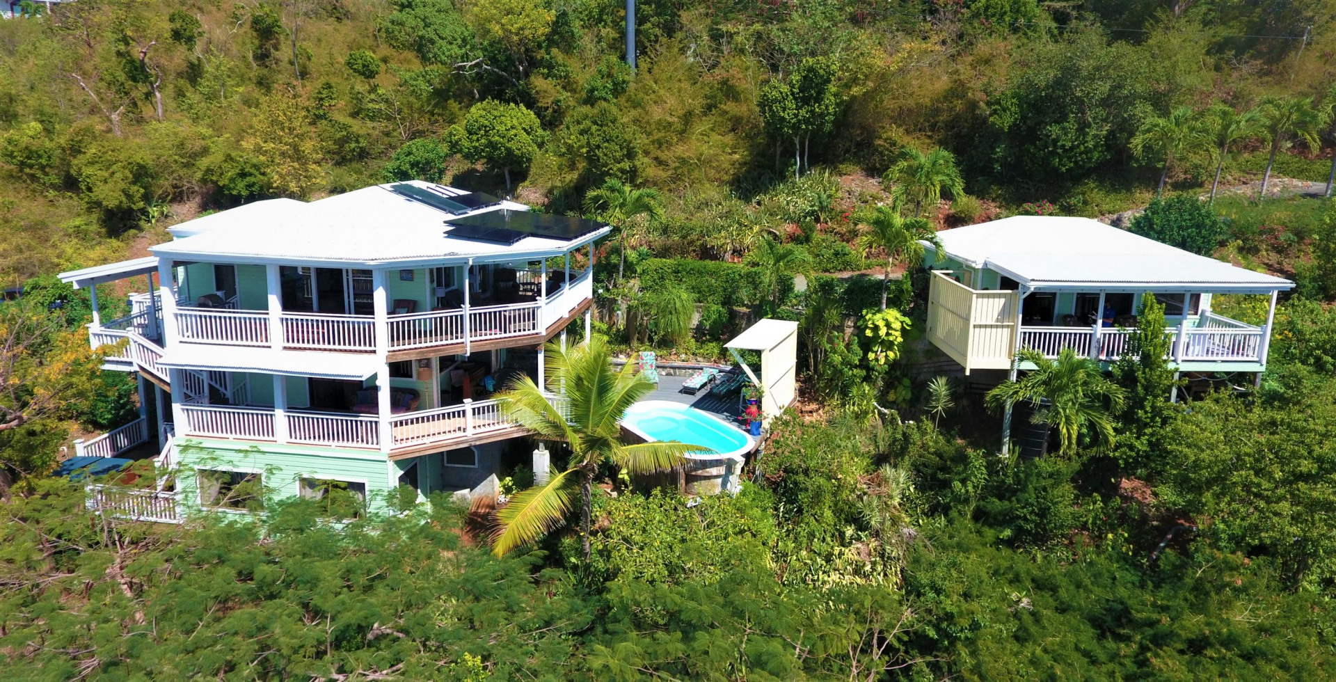 More About 24 Chocolate Hole, St. John, USVI, 00830Villa Meritage is a private oasis nestled into the verdant hillside overlooking Hart Bay and Chocolate Hole. Facing west to capture fiery sunsets, the 4 bedroom - 4 bath pool home with jacuzzi features a stand alone studio cottage (built 2000) with private jacuzzi. Beautifully landscaped and tastefully furnished, this villa has a great rental history.