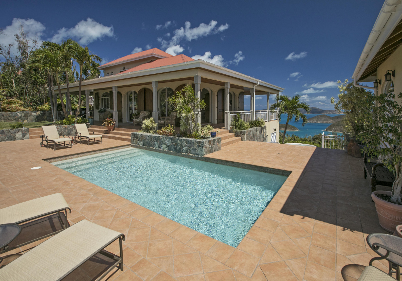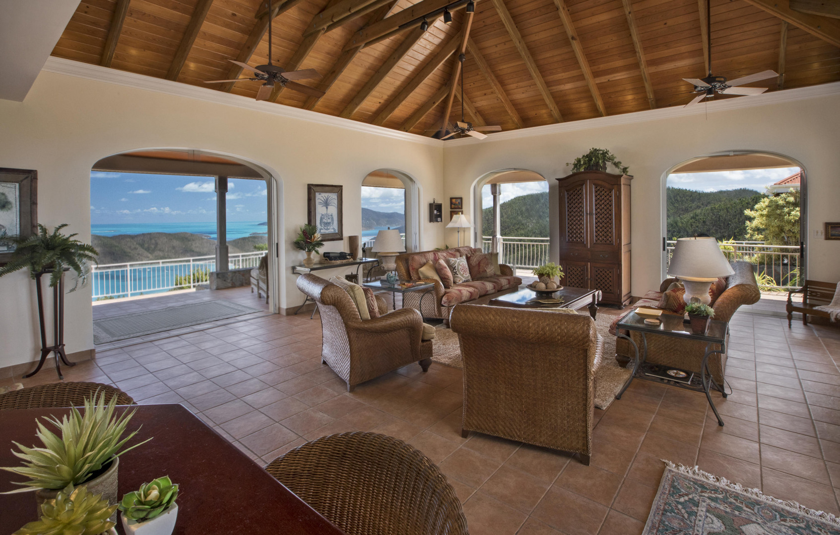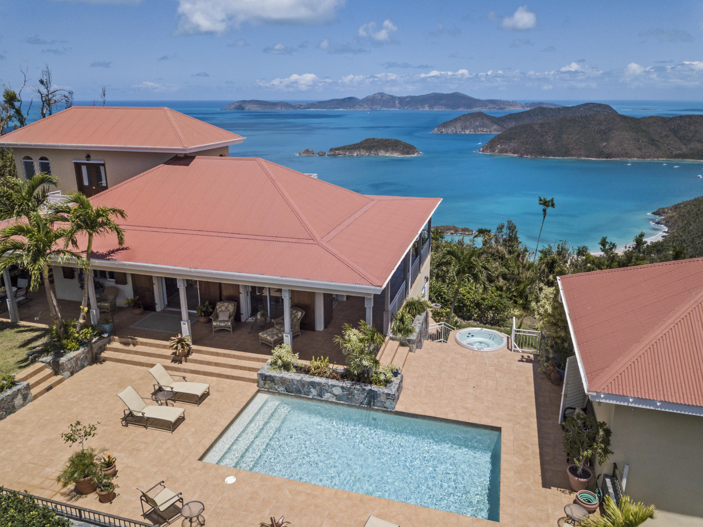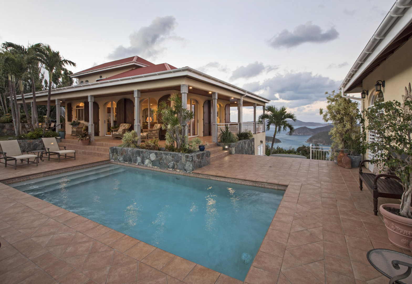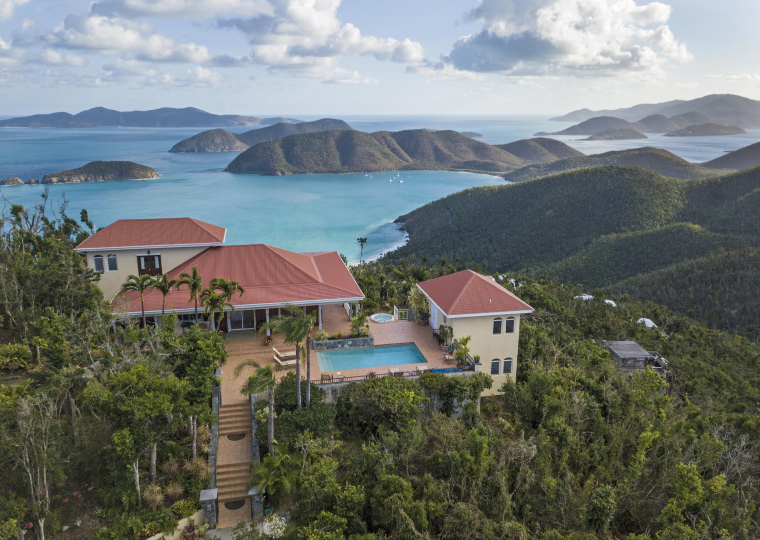 Discreetly tucked behind a gate at the end of a long winding driveway, Island Sun sits high atop one of St John's most treasured locations with 270 degree north shore views from Jost Van Dyke, Whistling Cay, the West End of Tortola all the way south to St Croix. Tastefully designed, the home elegantly melds classic West Indian vernacular design into a versatile modern villa estate equally suited to serve as either a primary residence or the quintessential island retreat. This ultra-private, acre plus knoll top refuge offers all the essential luxuries required for the ultimate St John lifestyle. Highlights include four well appointed guest suites, masonry construction, a professionally landscaped park-like setting, a sun drenched pool deck, private hot tub and a deep wrap around -