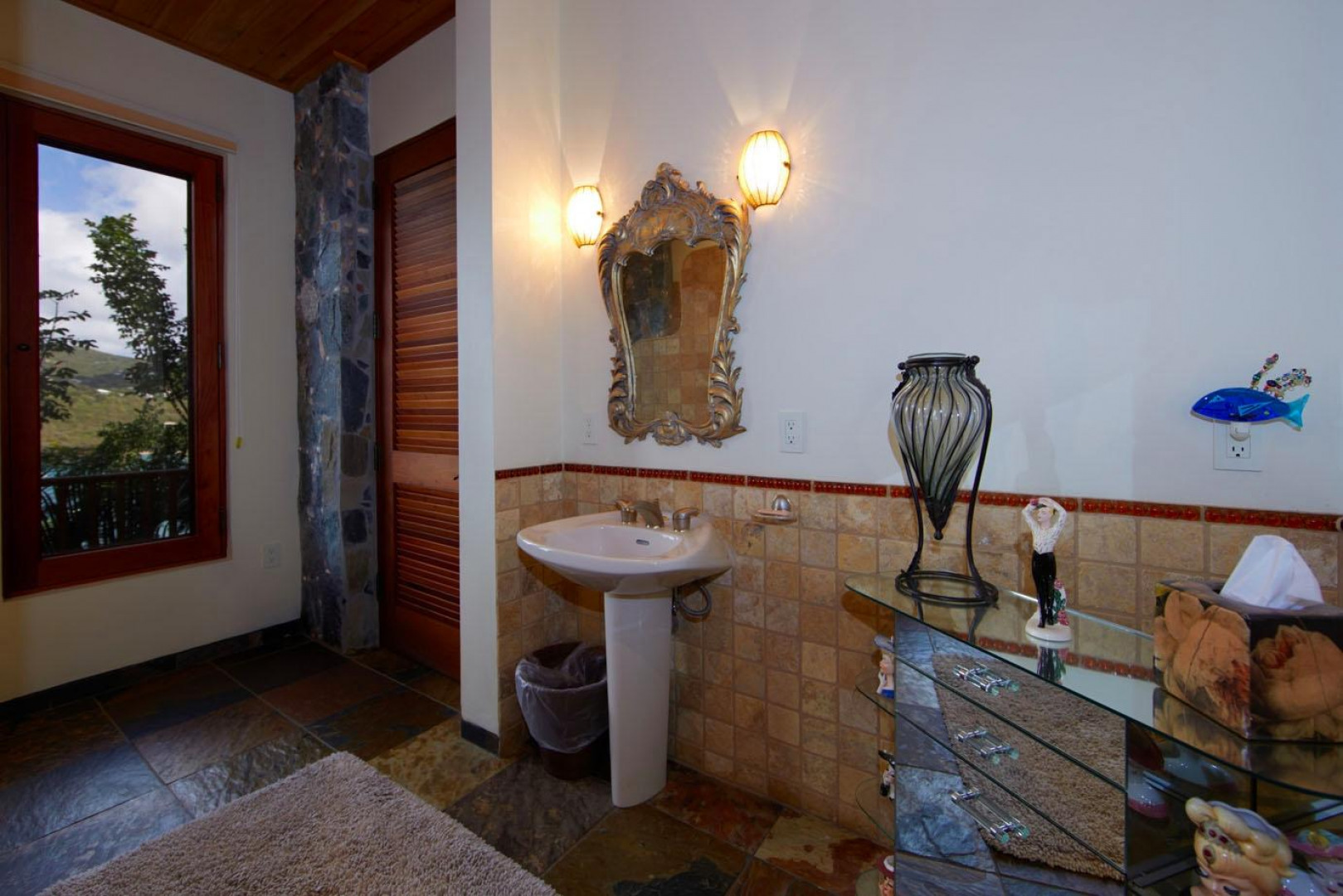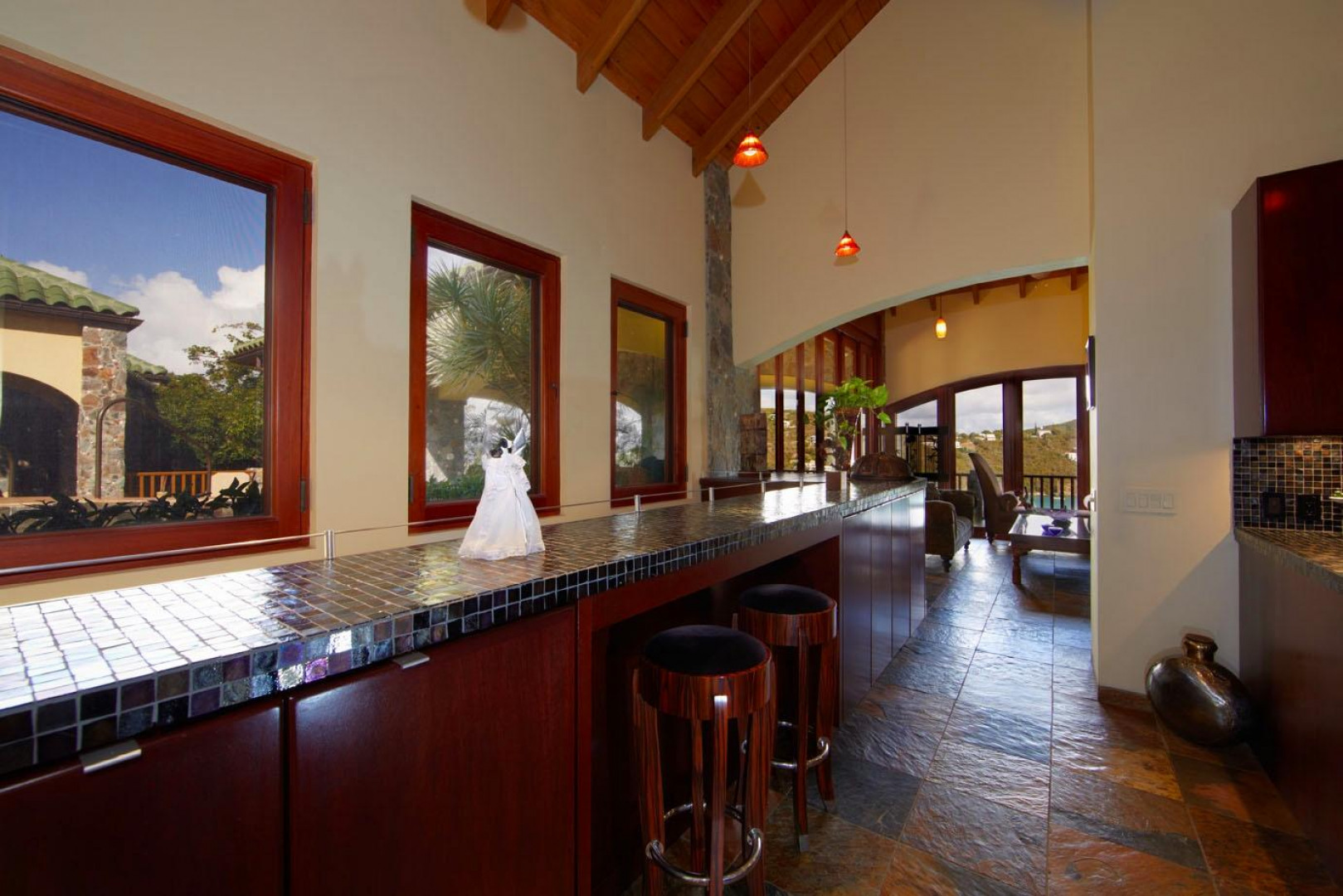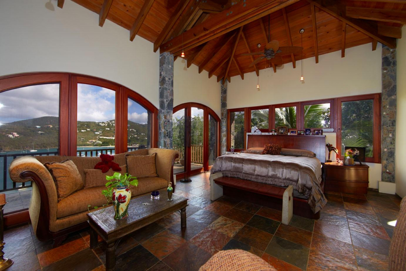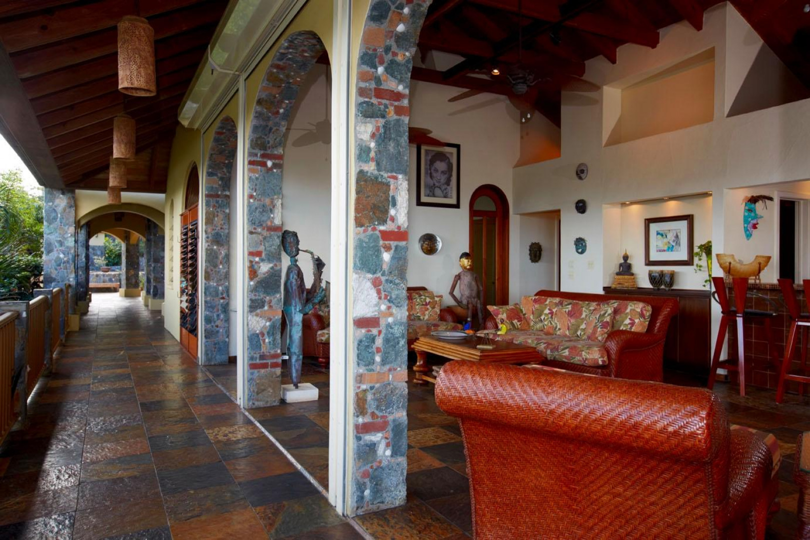 ''L'Autre Monde'' (''Another World'' in French) offers extraordinary sunset views with the twinkling lights of St. Thomas and Cruz Bay harbor. This unique, custom villa was built with entertaining in mind. The east wing consists of 4 bedrooms, 4.5 bathrooms with gourmet kitchen, outdoor dining, beautiful custom pool with waterfall feature and well-appointed grill area. Just across a covered stone walkway is the west wing. The main level consists of 2 bedrooms, 2 bathrooms, open air living area with spacious great room & dining, custom gourmet kitchen and a heated pool with large deck area. The lower lever consists of a studio bedroom and bathroom with private entry that could be used as a caretaker's suite. A real ''MUST SEE'' when exceptional, high end quality is paramount. SEE SUPPLEMENTL'Autre Monde ("Another World") is a unique, custom built property with quality, high end finishes that should truly be seen to be appreciated. Much attention was paid to detail with African slate tile floors throughout most of the property, extensive stonework, handmade glass sinks, custom cabinetry, indoor/outdoor audio system, etc....and a 44kw full house, auto generator (just in case). The original structure, that is now the guest house, was once a very popular short term rental property with Catered To Property Management until it became the owner's primary residence and the master suite (or east wing) was added to the original property. This property again could be a great short term rental, should one choose, either as a 7 bedroom rental, using both houses, or an owner could live on either side of the property and rent the other. The walkway between the 2 houses could easily be gated ensuring privacy to both houses. This is the perfect arrangement for an owner that entertains many friends and/or business associates. About the location L'Autre Monde is located in Great Cruz Bay neighborhood with protective Covenants & Restrictions and private dinghy dock access. This well maintained neighborhood is very popular for short term rentals. It is a wonderful area for a morning jog or evening stroll and you are just a few minutes from town, shopping, grocery stores, restaurants and North Shore beaches. Main House/East Wing What started out to be a master suite addition turned into a 4 bedroom main house! Completed in 2004, the east wing is completely separate and self-sufficient from the original house with its own professional kitchen with custom cabinetry, laundry room, pool, BBQ area and plenty of storage space with a room by the pool and below the house. The master suite, living area and kitchen are located on the upper level. The laundry room and 3 bedrooms are located on the lower level. One bedroom is currently being used as a gym and office. Guest House/West Wing The original structure, which is now the Guest House/West Wing, was originally built in 1989 and extensively renovated in 2004 with the addition of the East Wing. It is a classic Caribbean design with the kitchen and living area under roof & open air to fully enjoy the beautiful views and climate. The pool, adjacent to the living area, is also under roof and opens into a large deck area where one can fully enjoy the sun and views. The pool is heated and equipped with a swim machine. The West Wing has its own professional kitchen with custom cabinetry, laundry room, BBQ area and storage on lower level. The two master suites are situated on either side of the living area and the 3rd bedroom is located on the lower level and could be used as a Caretaker's suite. The property is set up so that owners and their guests can enjoy time together and also have privacy. There are separate parking areas and both entrances are gated. A complete inventory of furnishings will be provided at time of contract. -