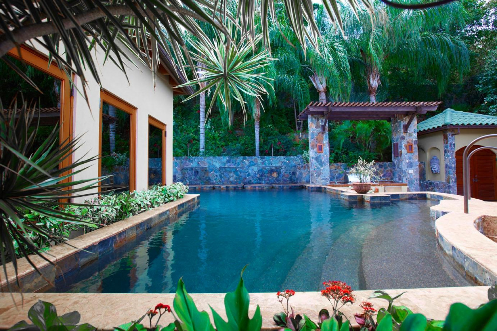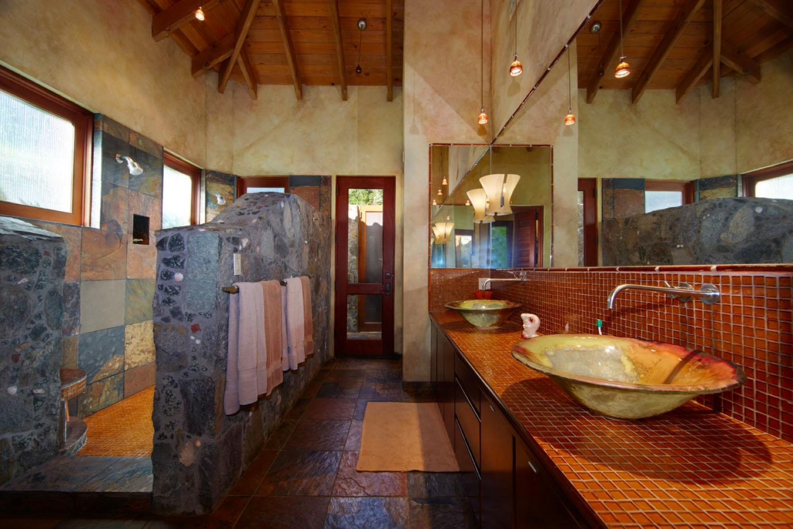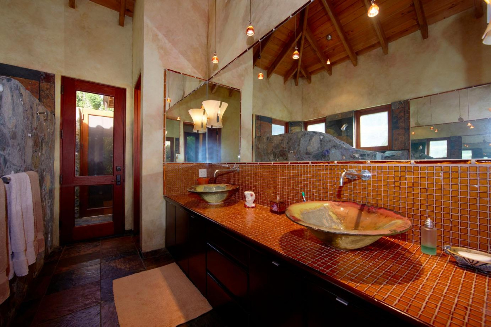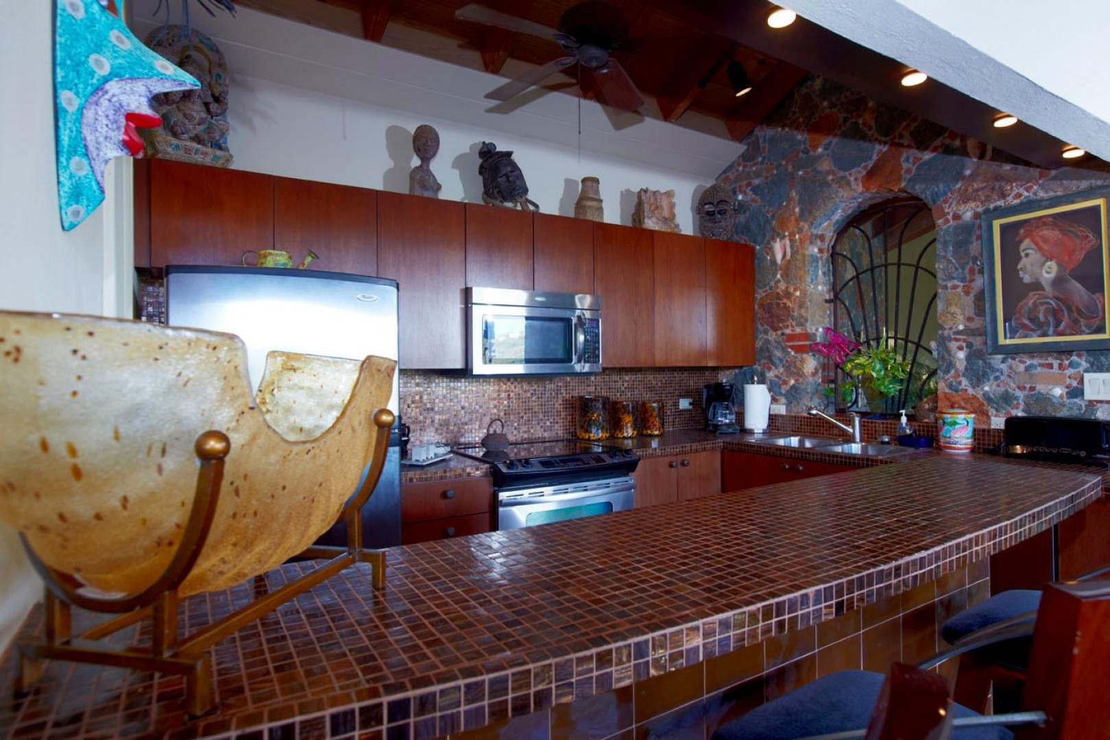 ''L'Autre Monde'' (''Another World'' in French) offers extraordinary sunset views with the twinkling lights of St. Thomas and Cruz Bay harbor. This unique, custom villa was built with entertaining in mind. The east wing consists of 4 bedrooms, 4.5 bathrooms with gourmet kitchen, outdoor dining, beautiful custom pool with waterfall feature and well-appointed grill area. Just across a covered stone walkway is the west wing. The main level consists of 2 bedrooms, 2 bathrooms, open air living area with spacious great room & dining, custom gourmet kitchen and a heated pool with large deck area. The lower lever consists of a studio bedroom and bathroom with private entry that could be used as a caretaker's suite. A real ''MUST SEE'' when exceptional, high end quality is paramount. SEE SUPPLEMENTL'Autre Monde ("Another World") is a unique, custom built property with quality, high end finishes that should truly be seen to be appreciated. Much attention was paid to detail with African slate tile floors throughout most of the property, extensive stonework, handmade glass sinks, custom cabinetry, indoor/outdoor audio system, etc....and a 44kw full house, auto generator (just in case). The original structure, that is now the guest house, was once a very popular short term rental property with Catered To Property Management until it became the owner's primary residence and the master suite (or east wing) was added to the original property. This property again could be a great short term rental, should one choose, either as a 7 bedroom rental, using both houses, or an owner could live on either side of the property and rent the other. The walkway between the 2 houses could easily be gated ensuring privacy to both houses. This is the perfect arrangement for an owner that entertains many friends and/or business associates. About the location L'Autre Monde is located in Great Cruz Bay neighborhood with protective Covenants & Restrictions and private dinghy dock access. This well maintained neighborhood is very popular for short term rentals. It is a wonderful area for a morning jog or evening stroll and you are just a few minutes from town, shopping, grocery stores, restaurants and North Shore beaches. Main House/East Wing What started out to be a master suite addition turned into a 4 bedroom main house! Completed in 2004, the east wing is completely separate and self-sufficient from the original house with its own professional kitchen with custom cabinetry, laundry room, pool, BBQ area and plenty of storage space with a room by the pool and below the house. The master suite, living area and kitchen are located on the upper level. The laundry room and 3 bedrooms are located on the lower level. One bedroom is currently being used as a gym and office. Guest House/West Wing The original structure, which is now the Guest House/West Wing, was originally built in 1989 and extensively renovated in 2004 with the addition of the East Wing. It is a classic Caribbean design with the kitchen and living area under roof & open air to fully enjoy the beautiful views and climate. The pool, adjacent to the living area, is also under roof and opens into a large deck area where one can fully enjoy the sun and views. The pool is heated and equipped with a swim machine. The West Wing has its own professional kitchen with custom cabinetry, laundry room, BBQ area and storage on lower level. The two master suites are situated on either side of the living area and the 3rd bedroom is located on the lower level and could be used as a Caretaker's suite. The property is set up so that owners and their guests can enjoy time together and also have privacy. There are separate parking areas and both entrances are gated. A complete inventory of furnishings will be provided at time of contract. -