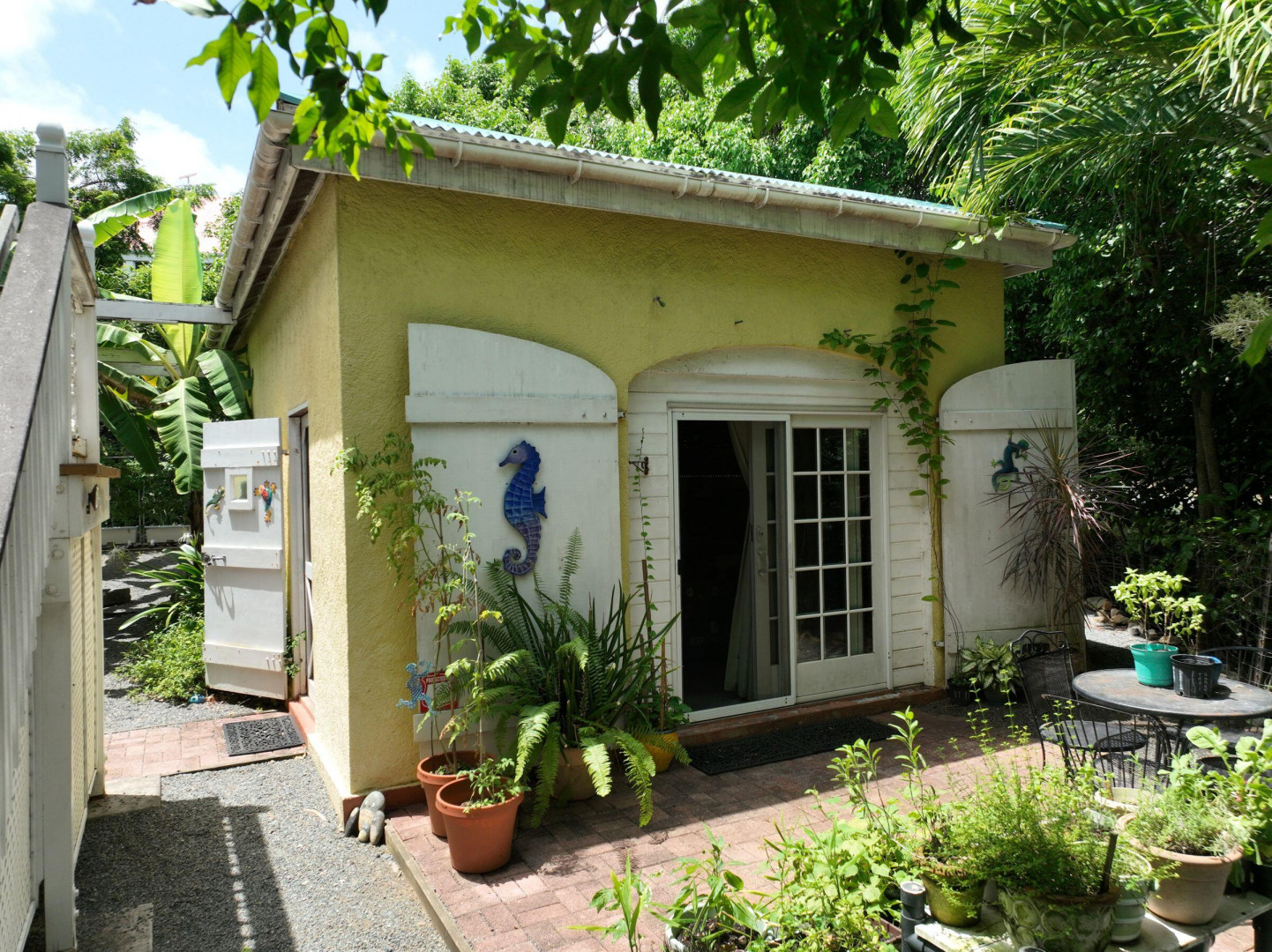 More About 3b-8 St. Quaco & Zimmerman, St. John, USVI, 00830''Rose Island Villa'' is a well built, concrete villa located in Johnson's Bay Estate with deeded beach access and gentle trade wind breezes. The villa is situated on .24 acre parcel with beautiful lush tropical landscaping and consists of a main upper unit with 1bdrm x 2 baths, a lower studio apartment and a separate guest cottage. Perfect situation for a private family retreat or live in main unit and supplement your mortgage with a long or short term rental. The lower laundry/utility room has a washer & dryer, stand up freezer and half bath. Solar has recently been added with 30 panels and 3 Tesla batteries; great savings on electric costs! Buyer and Seller to equally split the costs of the transfer stamp tax. Buyer to confirm square footages & cistern capacity.