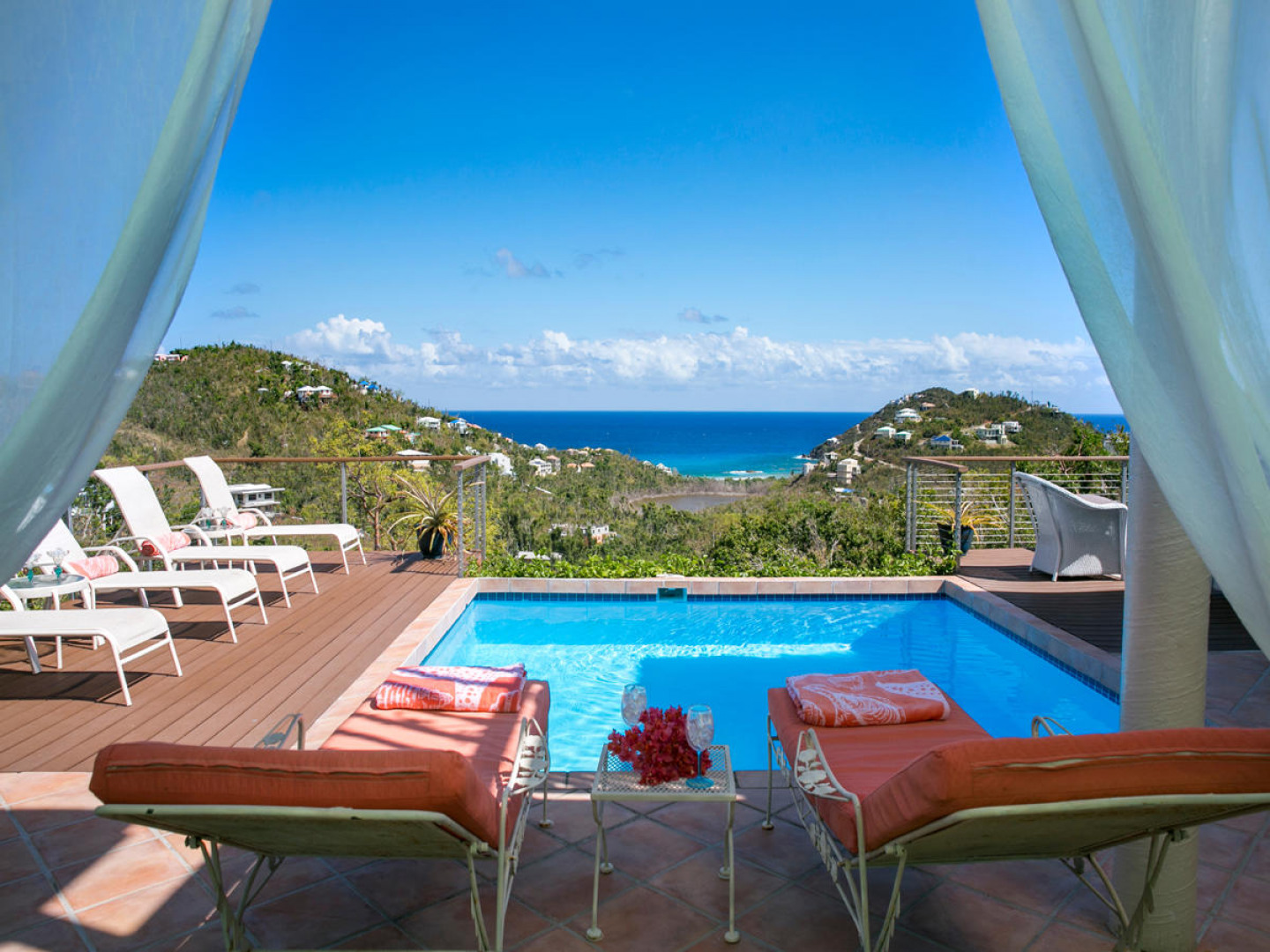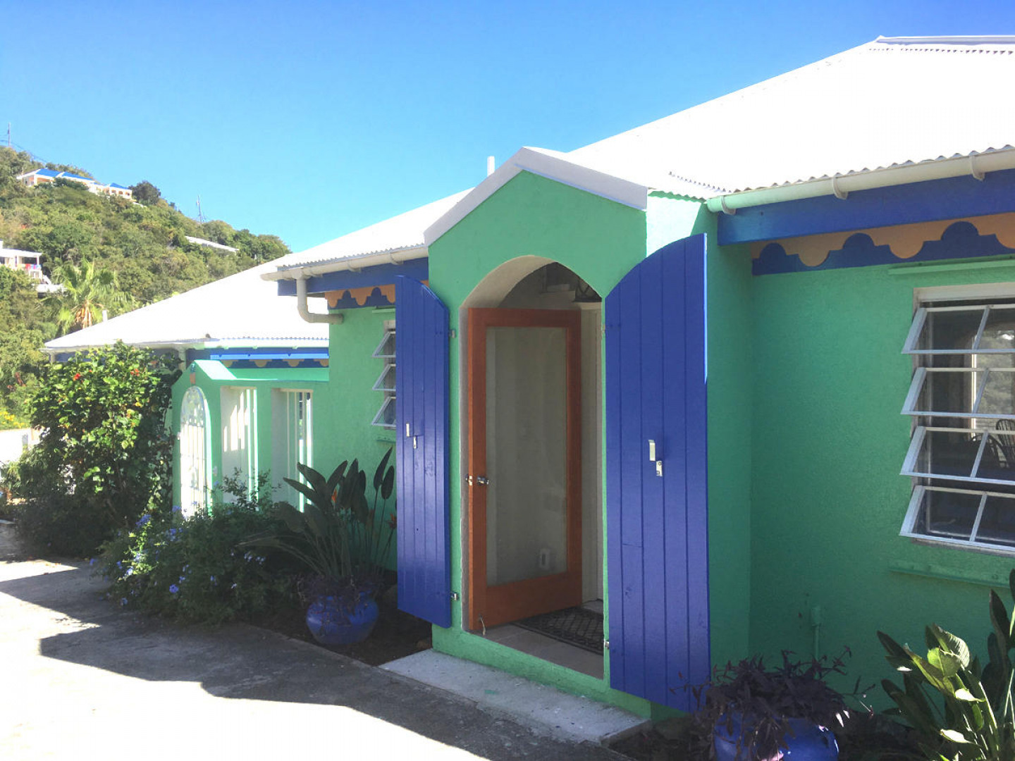 'Caribbean Colors' is a recently renovated all masonry home in upscale Chocolate Hole North. Motivated sellers. Features include a large pool deck, native stone arches, and an interior staircase to lower bedrooms. It faces southeast to catch the tradewind breezes, sun and moon rises and water views of Chocolate Hole, Hart Bay and the South Shore.Just minutes from Cruz Bay and a short walk to the Westin Resort. There are many custom features such as tile floors inlaid with Mexican accent tiles, mahogany trim, hand painted bathroom sinks, and vaulted cypress ceilings. The covered, screened gallery is wonderfully cool and breezy. Other features include brand new custom kitchen, professional colorful landscaping, fruit trees, fire pit and storm shutters. -