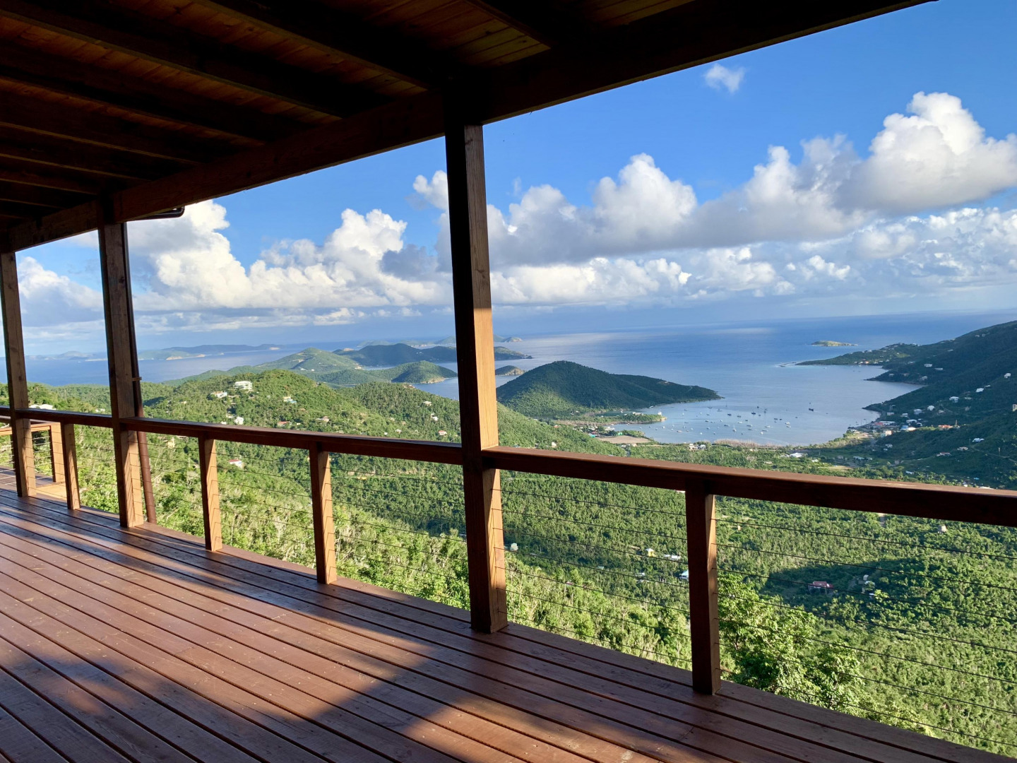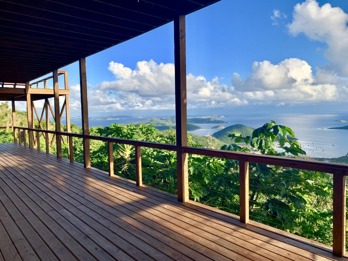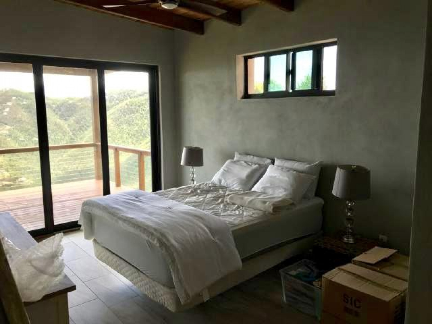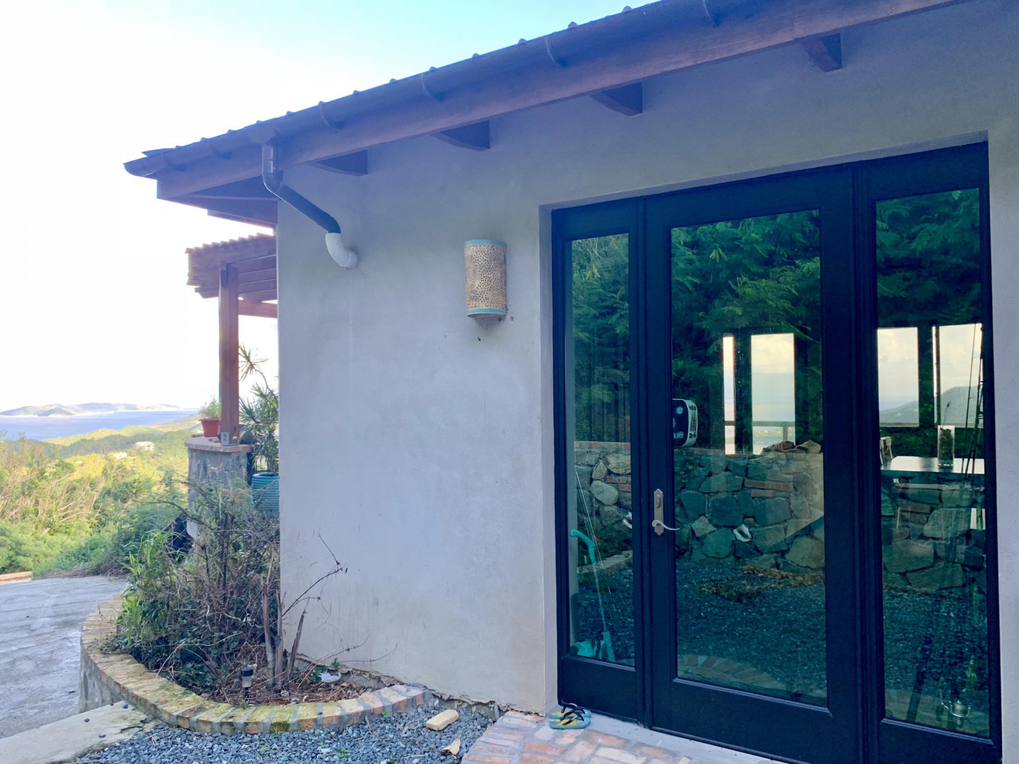 Villa Orenda - a concrete fortress sitting high on the hillside of coveted Ajax Peak with panoramic views that will take your breath away. Just minutes from the white sand North Shore beaches, this home is a true must-see, with solar panels powering 3/4 of the house. Orenda is an ideal layout for families, as all master suites are under one roof with interior access. A tasteful island stone entryway welcomes you to this newly constructed home with an incredible view from each of the hurricane rated windows and doors. Gaze down into Coral Bay harbor and beyond to the BVI, or across the lush valley views from 2 expansive decks featuring modern cable railings and a pool. Don't miss out on this opportunity! -