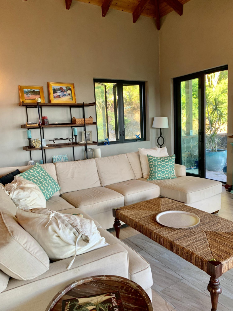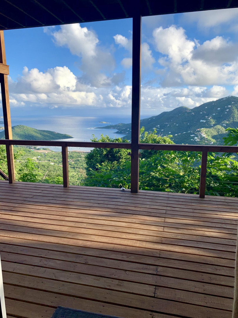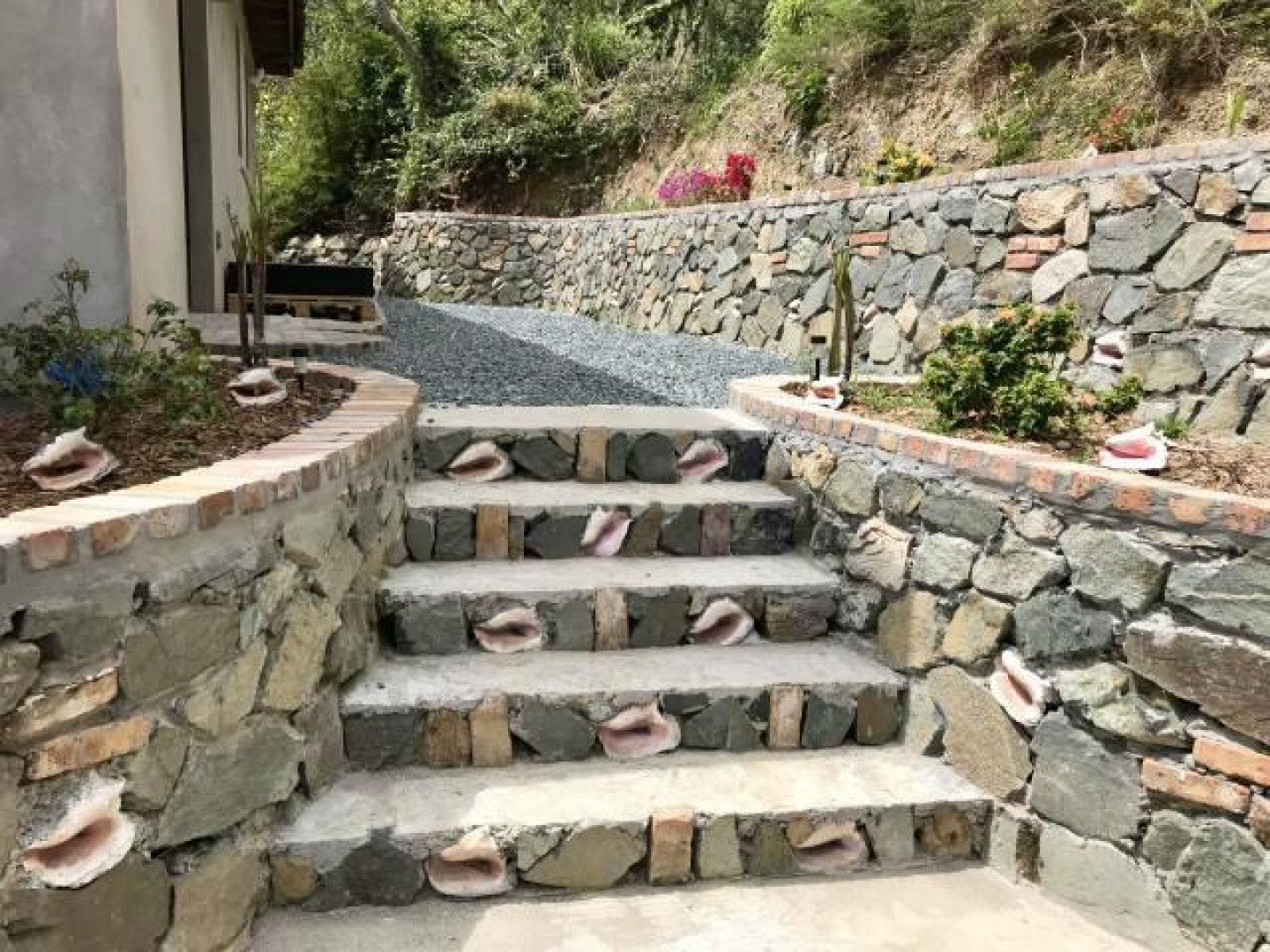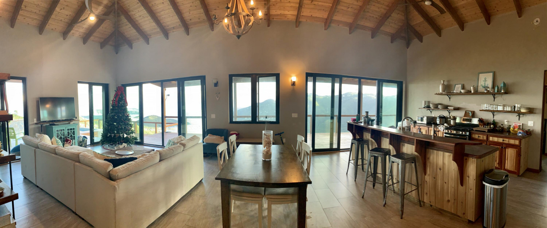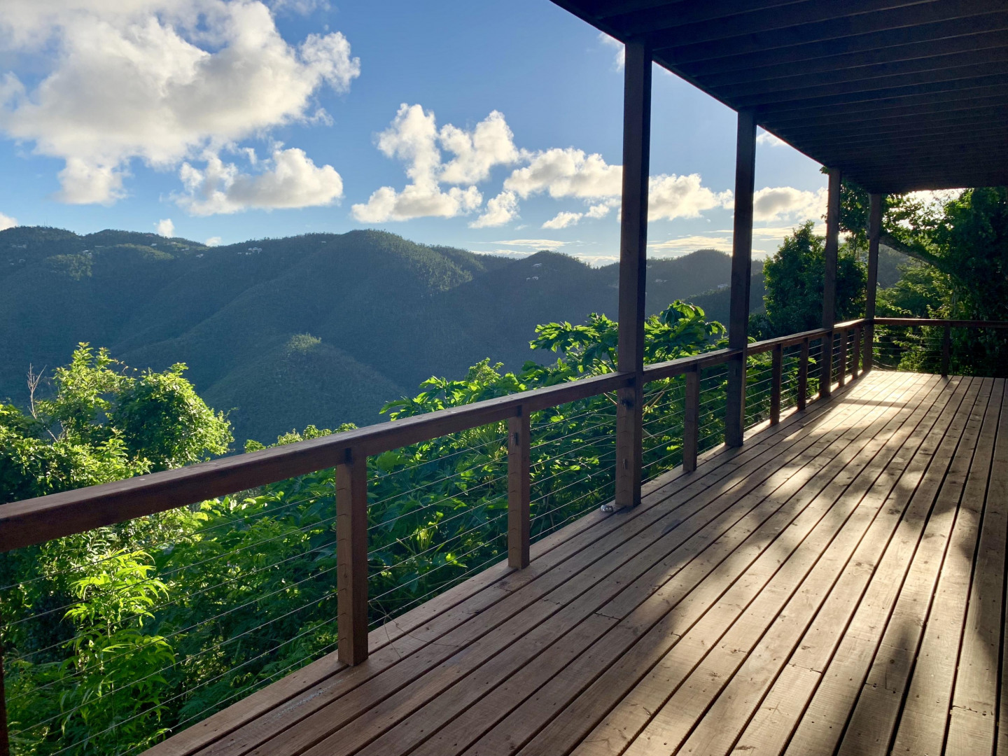 Villa Orenda - a concrete fortress sitting high on the hillside of coveted Ajax Peak with panoramic views that will take your breath away. Just minutes from the white sand North Shore beaches, this home is a true must-see, with solar panels powering 3/4 of the house. Orenda is an ideal layout for families, as all master suites are under one roof with interior access. A tasteful island stone entryway welcomes you to this newly constructed home with an incredible view from each of the hurricane rated windows and doors. Gaze down into Coral Bay harbor and beyond to the BVI, or across the lush valley views from 2 expansive decks featuring modern cable railings and a pool. Don't miss out on this opportunity! -