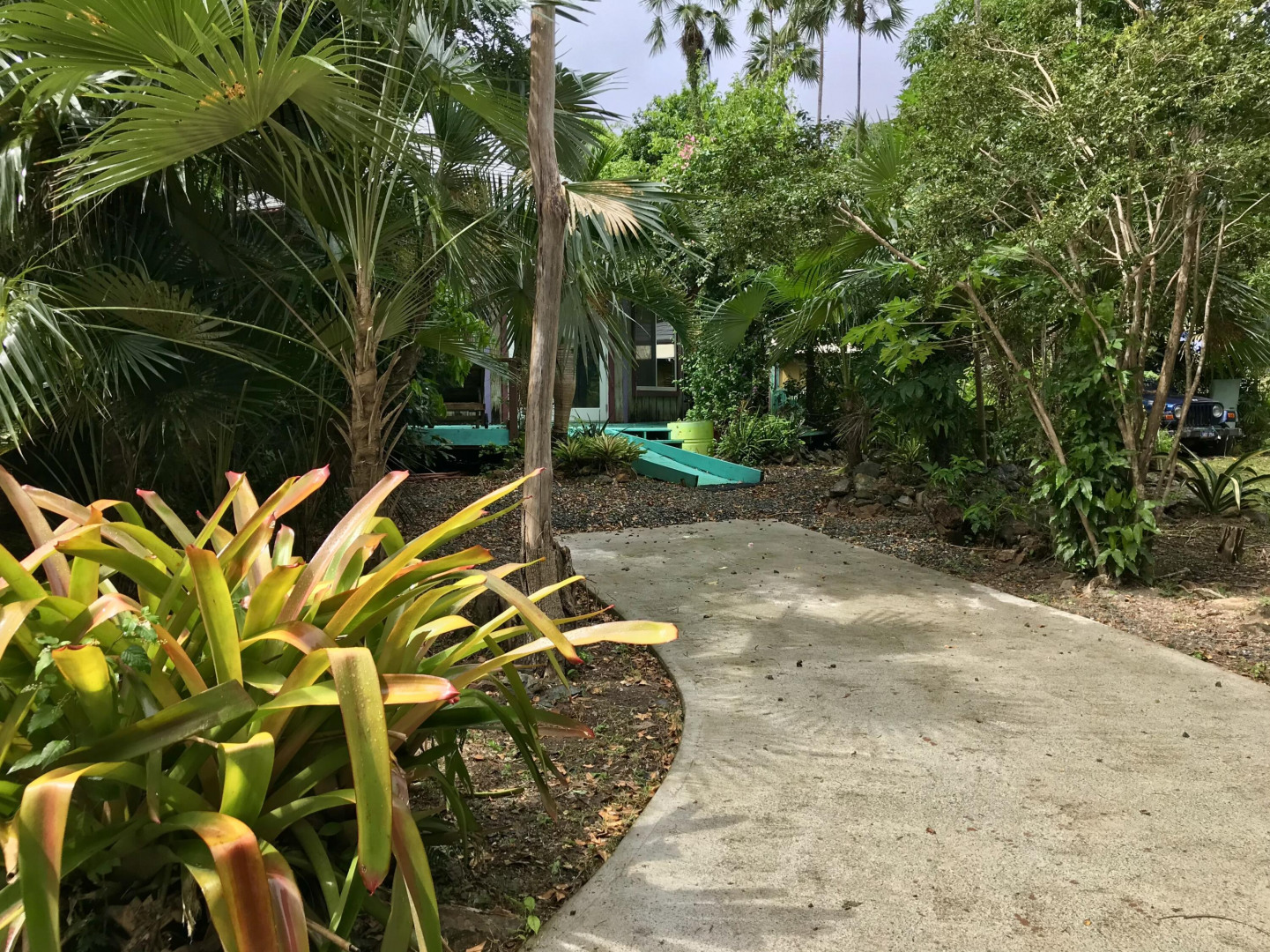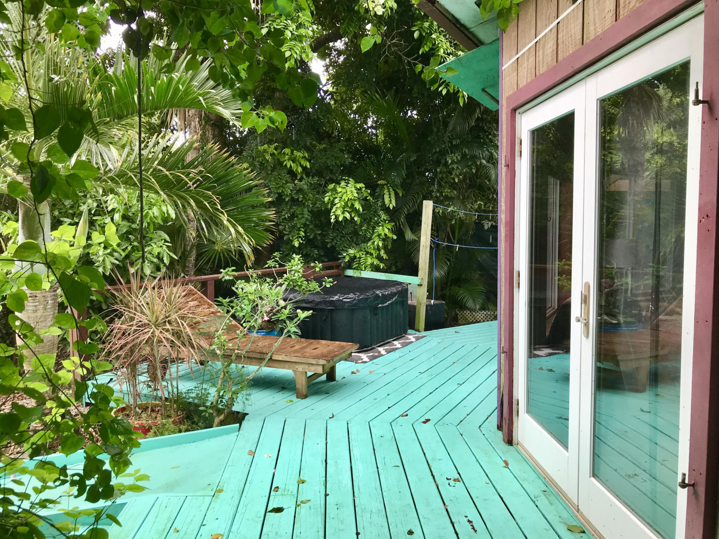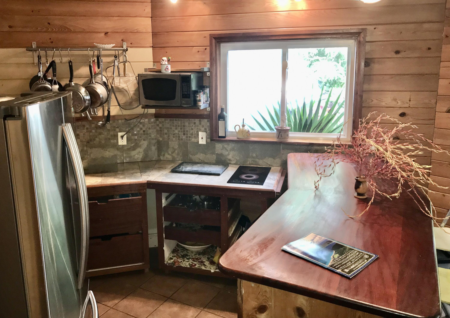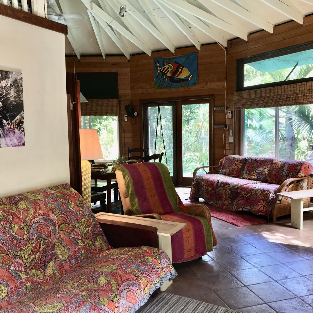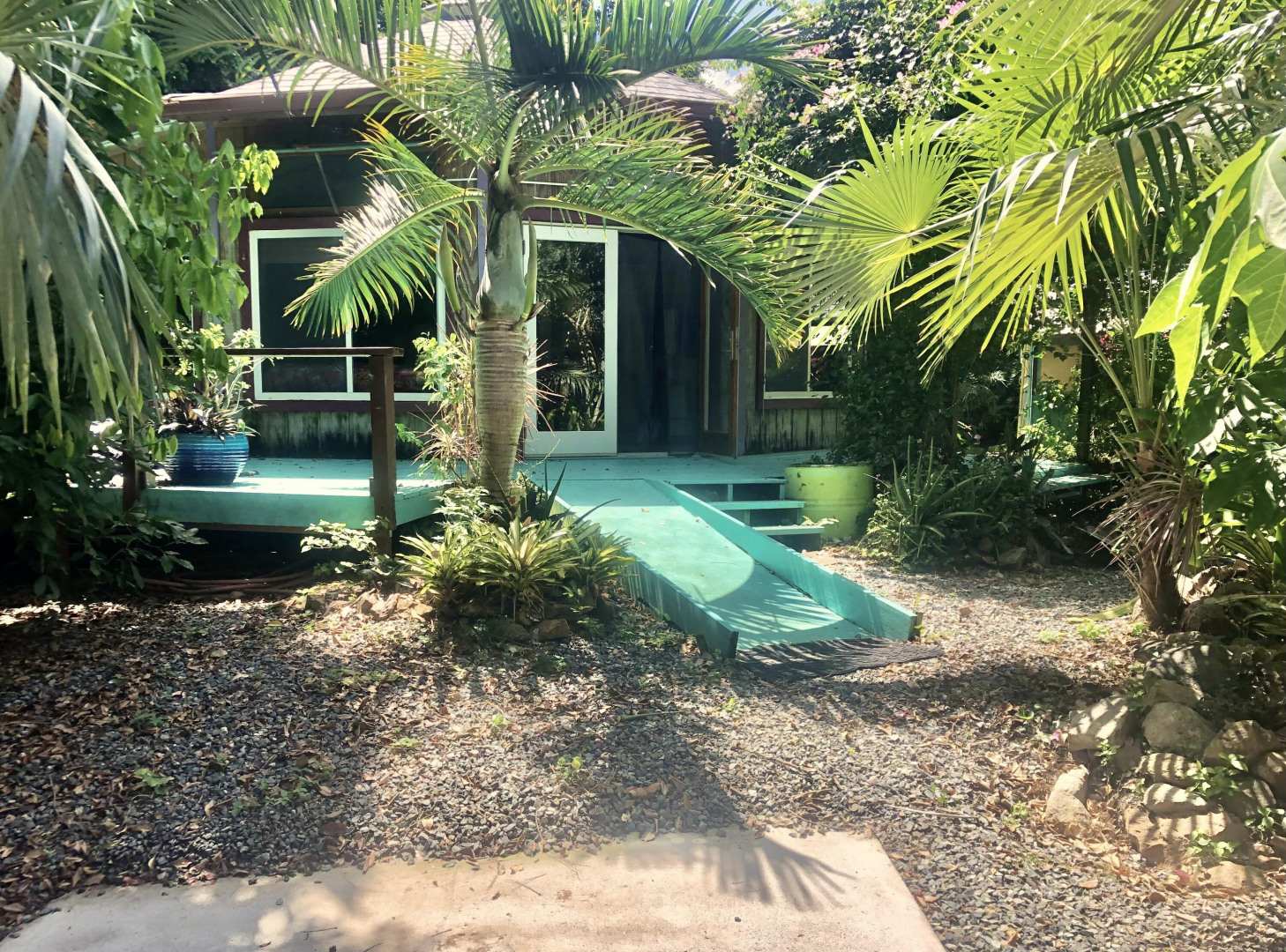 Gardeners Oasis! Flat lot with mature fruit trees and plantings with room for another small home and/or pool. Home has a certificate of occupancy and permanent power. Deltec home with deck surround. Another bedroom could be easily added, mahogany wood panels available to screen area for second bedroom. Deltec homes have flexibility because interior partition walls are non load bearing. Paved driveway to the front door allows for easy access and disability access. There is a concrete slab for a hot tub/spa off the deck. Small shed has electricity and serves as an artist's studio. Outside living space with decks wrap around most of the home.Kitchen Island is movable and can be refigured to accommodate a full range in the kitchen.Aqua clear waste treatment used on plants rated for 3 BR house -