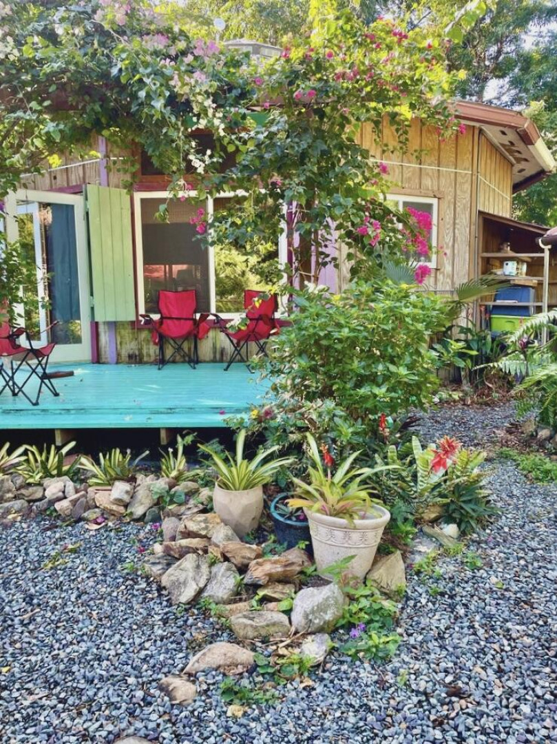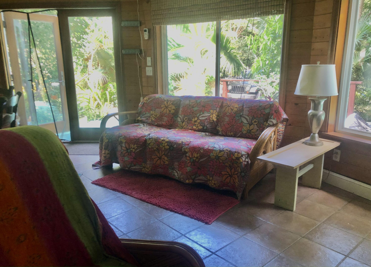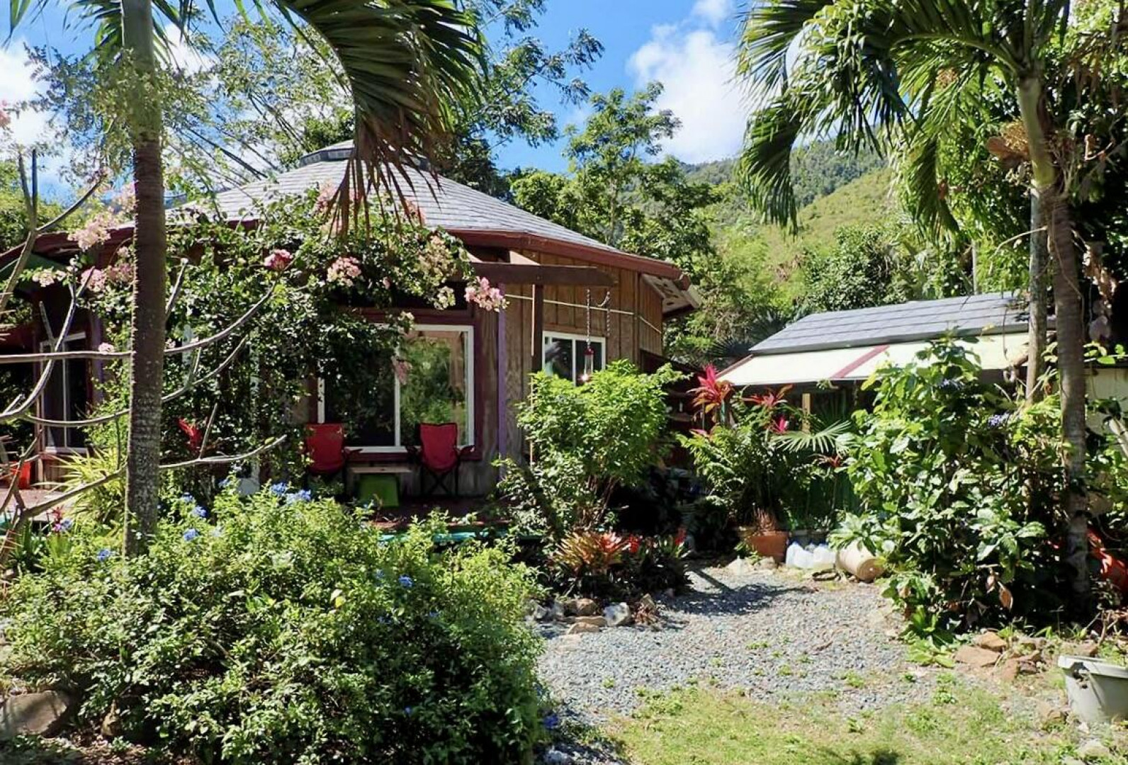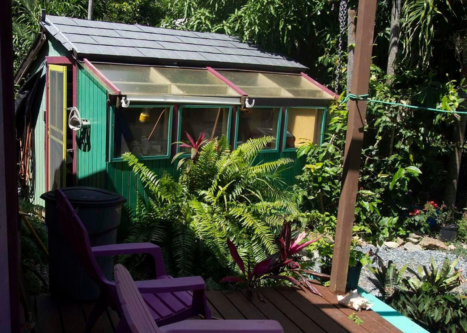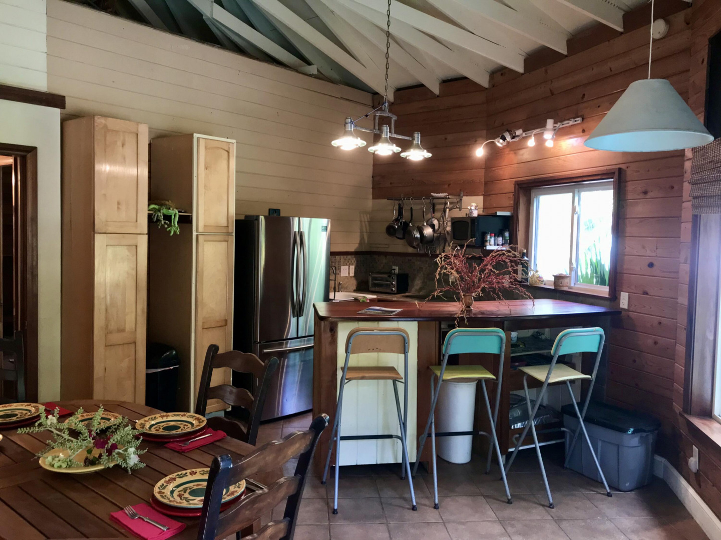 Gardeners Oasis! Flat lot with mature fruit trees and plantings with room for another small home and/or pool. Home has a certificate of occupancy and permanent power. Deltec home with deck surround. Another bedroom could be easily added, mahogany wood panels available to screen area for second bedroom. Deltec homes have flexibility because interior partition walls are non load bearing. Paved driveway to the front door allows for easy access and disability access. There is a concrete slab for a hot tub/spa off the deck. Small shed has electricity and serves as an artist's studio. Outside living space with decks wrap around most of the home.Kitchen Island is movable and can be refigured to accommodate a full range in the kitchen.Aqua clear waste treatment used on plants rated for 3 BR house -
