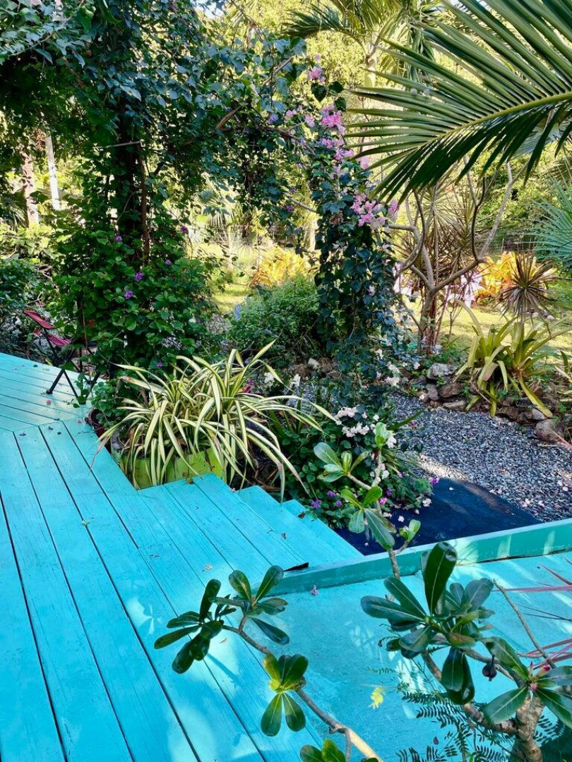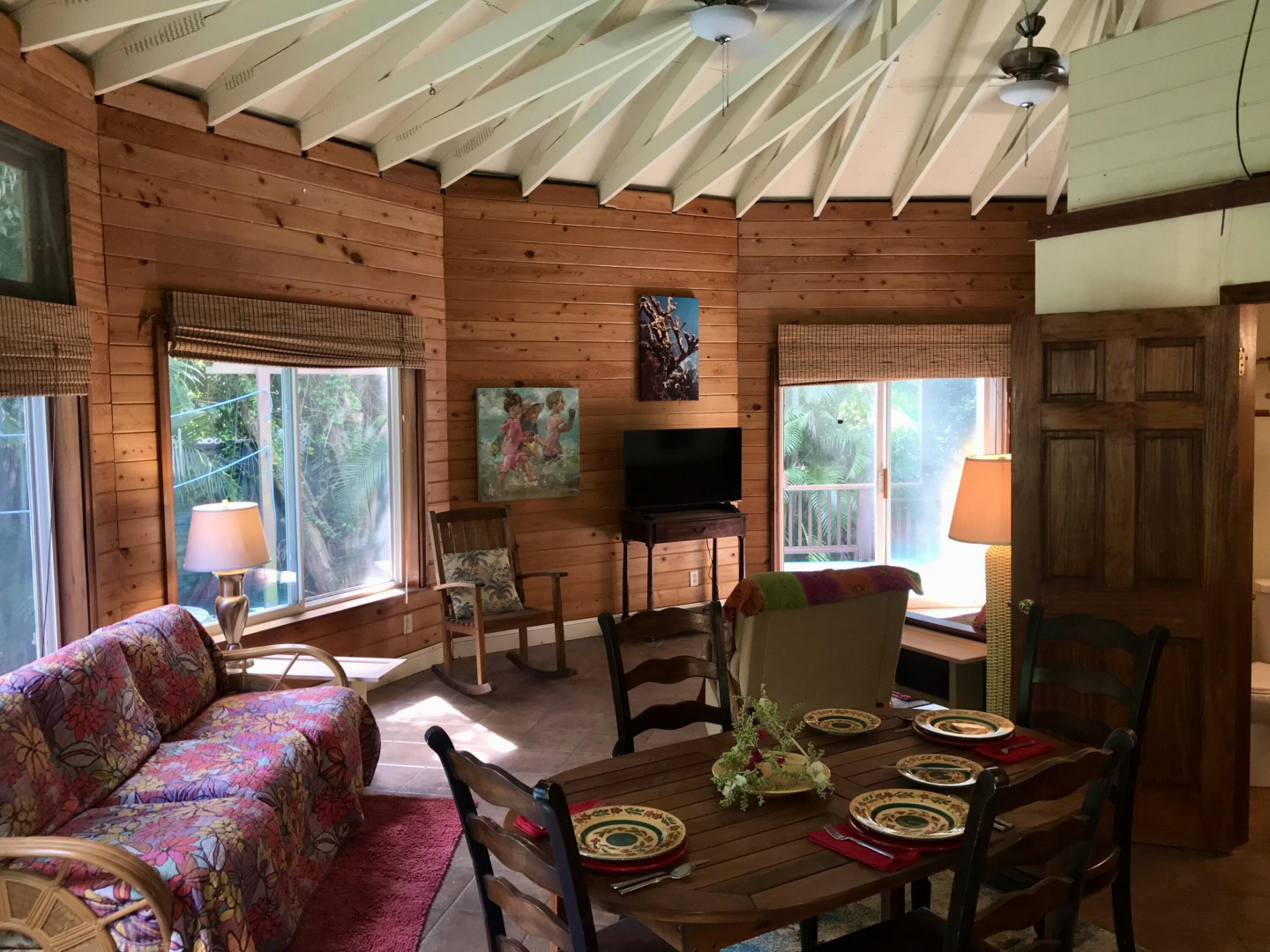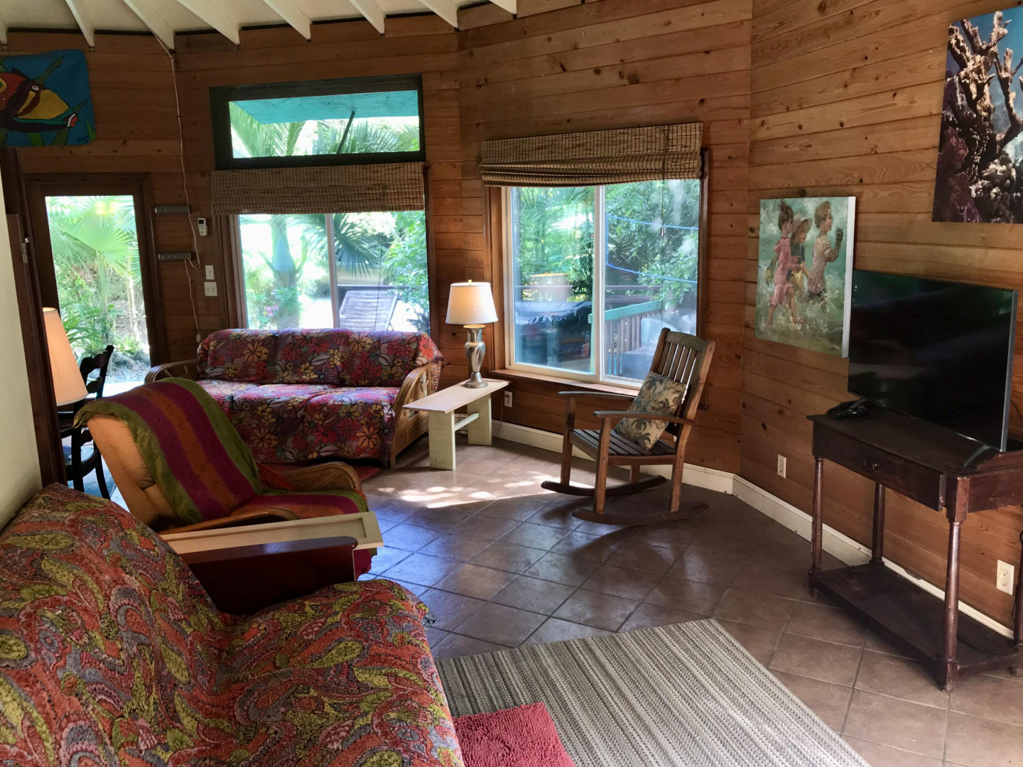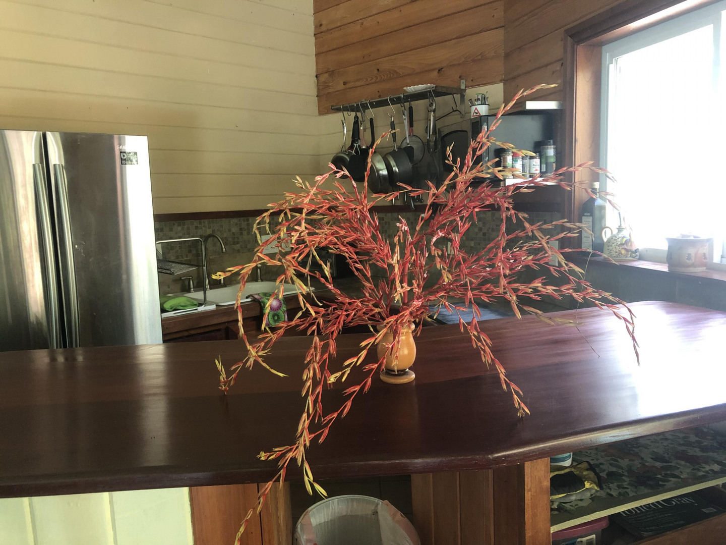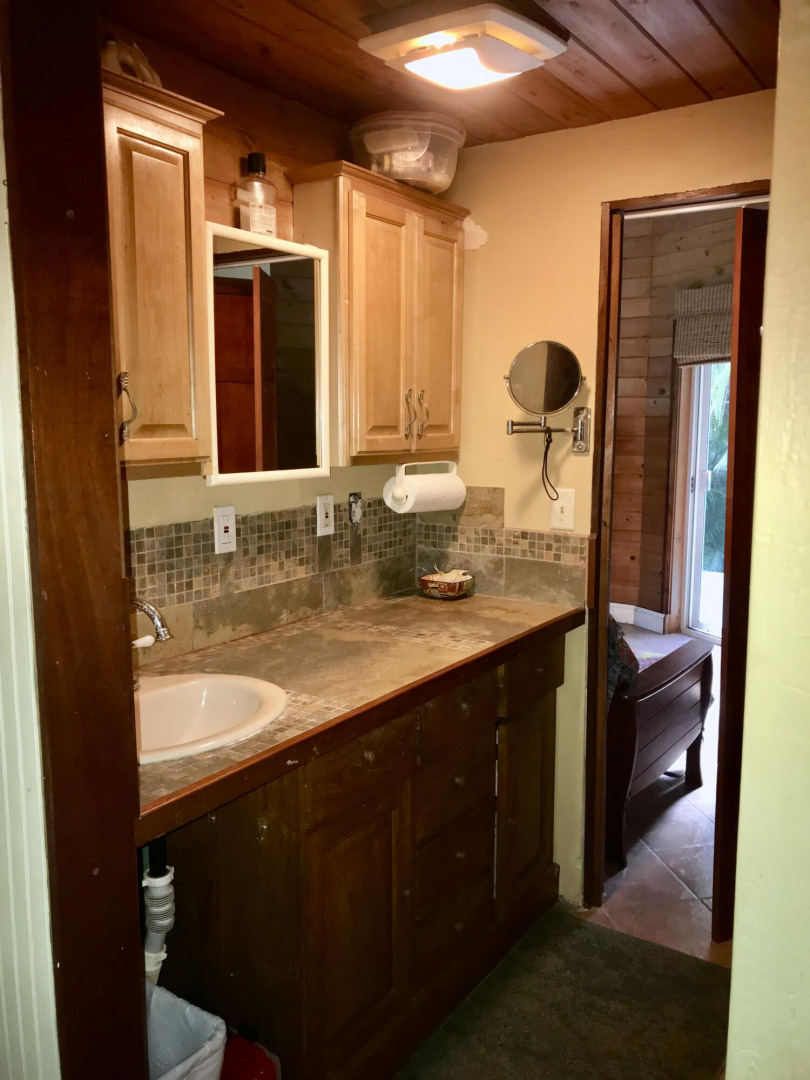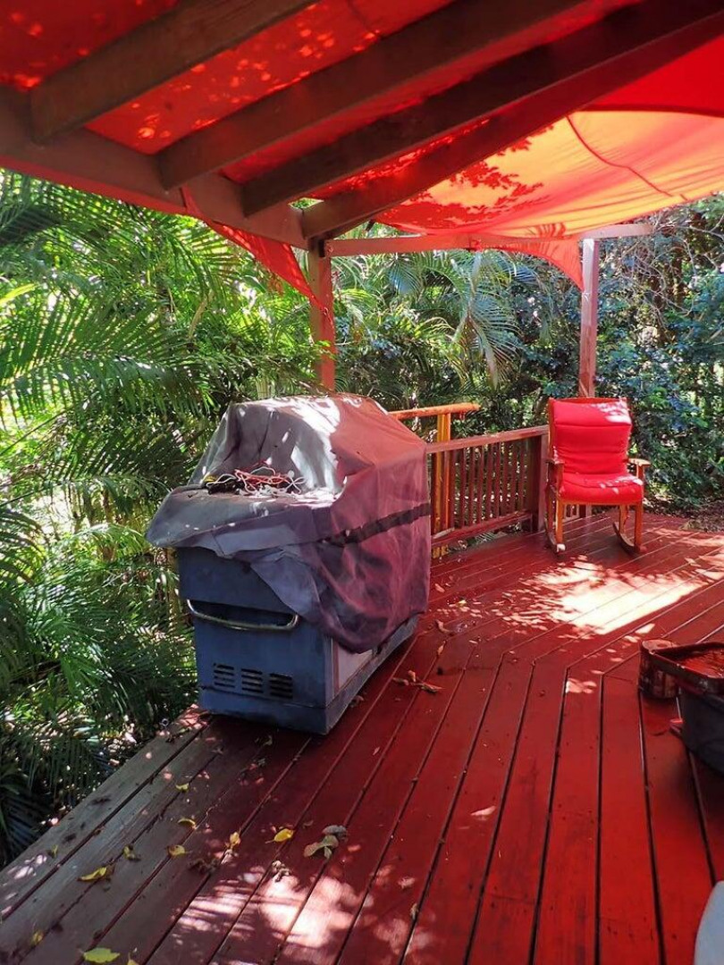 Gardeners Oasis! Flat lot with mature fruit trees and plantings with room for another small home and/or pool. Home has a certificate of occupancy and permanent power. Deltec home with deck surround. Another bedroom could be easily added, mahogany wood panels available to screen area for second bedroom. Deltec homes have flexibility because interior partition walls are non load bearing. Paved driveway to the front door allows for easy access and disability access. There is a concrete slab for a hot tub/spa off the deck. Small shed has electricity and serves as an artist's studio. Outside living space with decks wrap around most of the home.Kitchen Island is movable and can be refigured to accommodate a full range in the kitchen.Aqua clear waste treatment used on plants rated for 3 BR house -