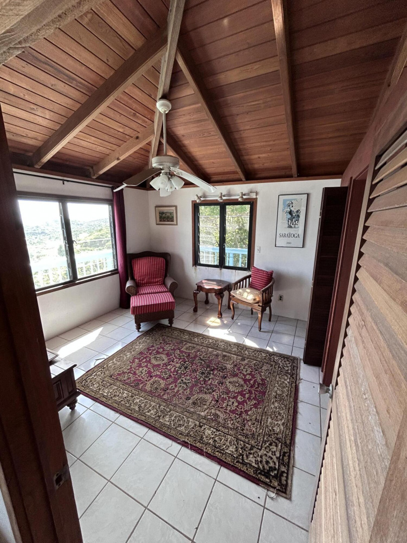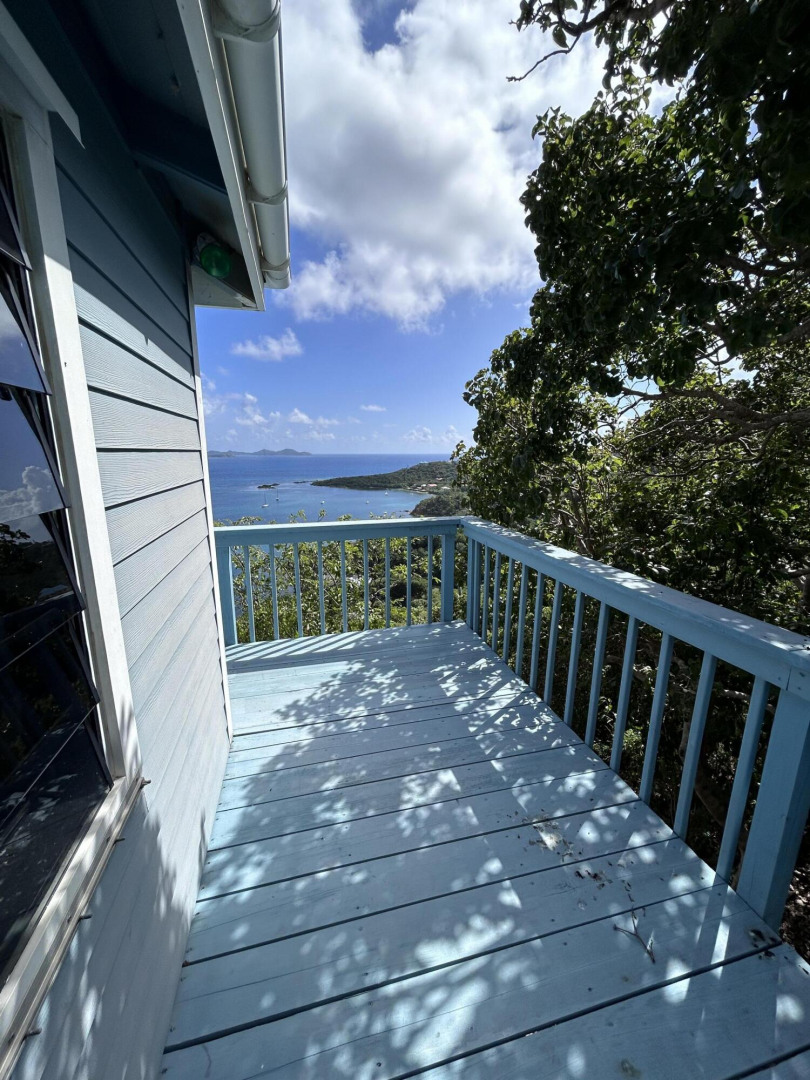 Enjoy breezes and sunrises year round in this charming neighborhood. This quaint Caribbean cottage has stunning views of the East End of St. John, Johnsons Reef, Caribbean Ocean, and the BVI. This property is a great starter home with two bedrooms and one bath. The existing footprint of the structure and ease of access lends itself to a multitude of future build options.