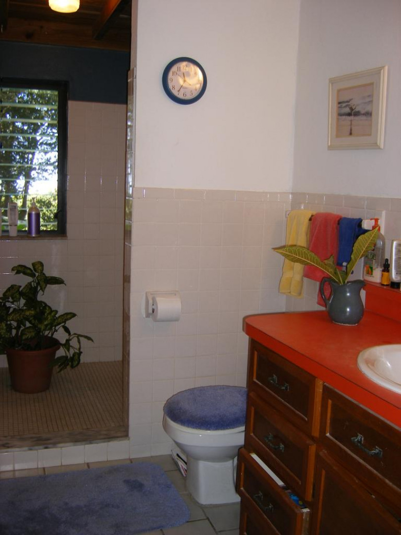 Delightful income producing home with pool and privacy is conveniently located on Gift Hill with beautiful water views. Extensive landscaping includes exotic orchids, palm trees, flamboyants, papayas, key limes, and 3 fish ponds. Gated circular drive and lush lawn. Views from large covered deck look out to Little St. James, Great St. James, St. Thomas, and even PR on clear days! SEE SUPPLEMENTMagnificent sunsets from large covered deck! Beautiful woodwork (inc. Purpleheart), island stone accents, and tiled floors throughout upper level. Two bedrooms, bath, bright living room and kitchen open onto 2 breezey deck areas upstairs. The private, large one bedroom one bath apartment below has separate entry, parking and room for expansion into shared laundry room. The back yard area has another small structure (wood) which can be a bedroom, studio or office. Private pool & sundeck are nestled below. Detached garage could be converted to office or more living space. Fenced yard is great for kids and pets.