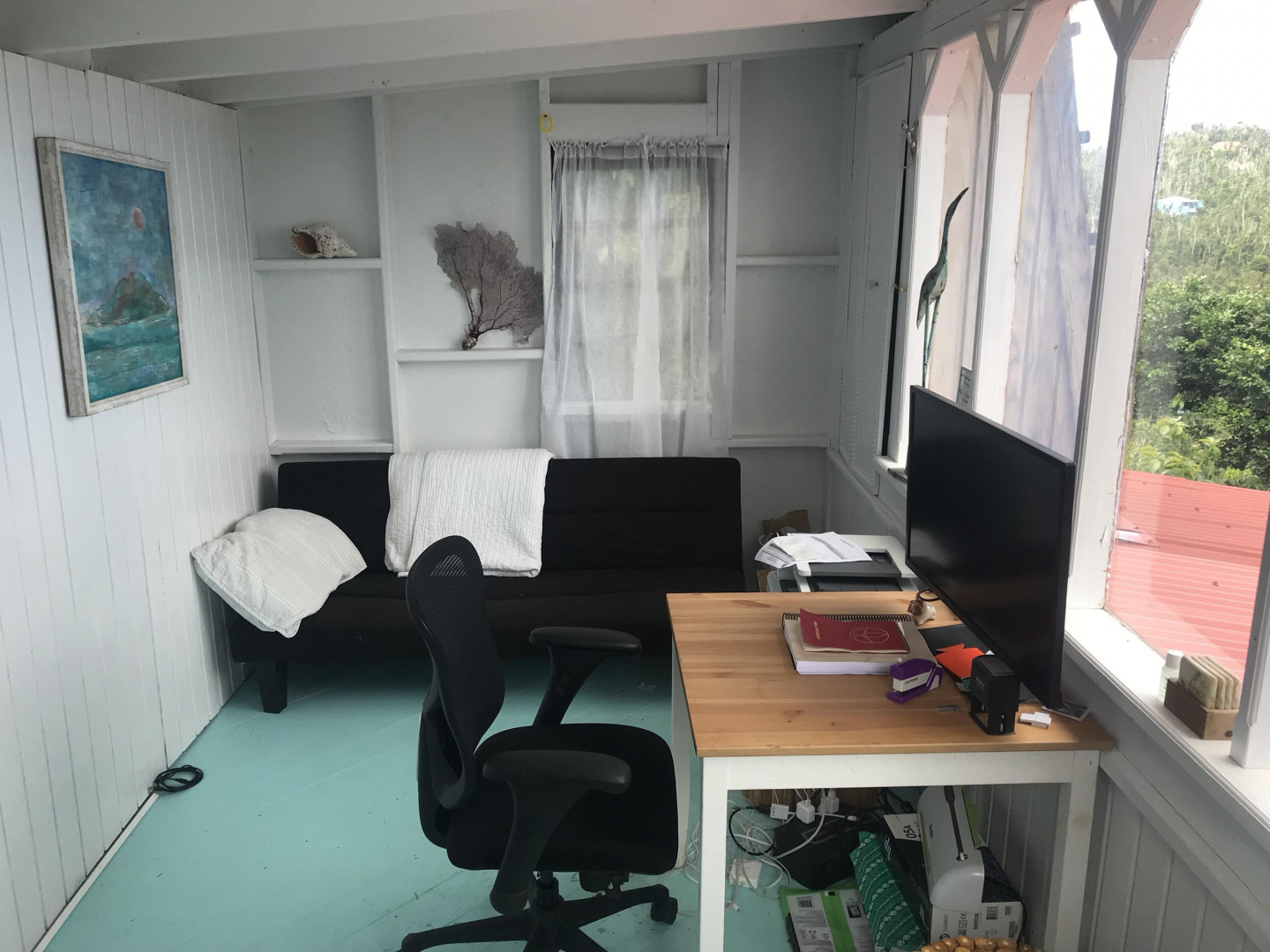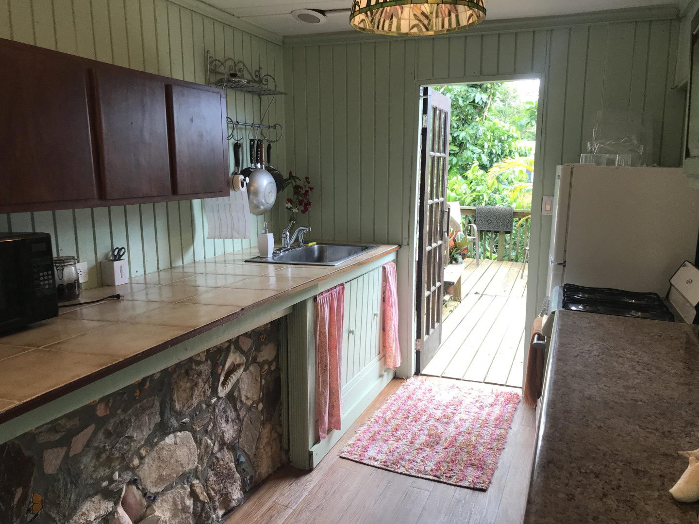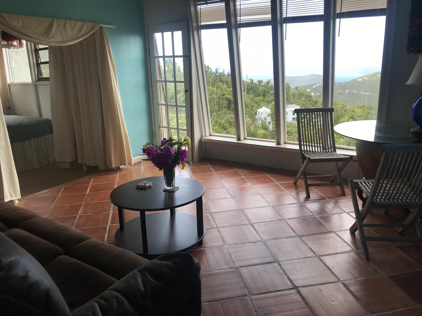 Hummingbird Cottage, an artistic multi-unit residence nestled on Bordeaux Mt with breathtaking views of the surrounding hillsides and the British Virgin Islands. Built with many rare hardwoods, creatively incorporating boulders from the hillside, with a galley style kitchen and spacious living room. The lower level apt provides lots of privacy and configuration options; upper level with excellent short-term rental history. The grounds around the house are abundant with mature plants, orchids, flowers and fruit trees--mango, papaya, , avocado, and passion fruit.A magnificent passion fruit vine allures the hummingbirds. Centrally located on Bordeaux Mountain; only minutes away from the National Park, Bordeaux Mountain Trail, ten minutes to the North Shore beaches and only fifteen minutes to Cruz Bay or Coral Bay.