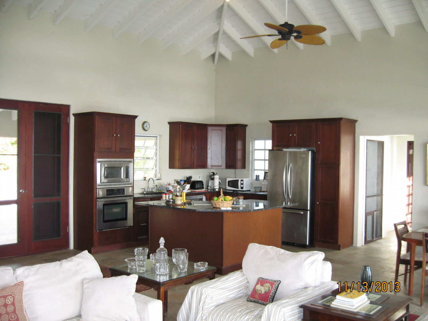 Enjoy sensational views from 'Windswept' across the glittering sea from Friis Bay to the British Virgin Islands. Lounge in the sunshine around the large concrete pool then let the afternoon shade cool you down while you relax on the upper deck. Listen to the surf while you watch the moon rise.The floor plan is perfect as a vacation rental. It features three master bedrooms with en-suite baths and separate balconies. The poolside spare room with half bath can easily be converted to a fourth bedroom suite. The home is solid masonry and features ceramic tile inside, slate tile outside, custom mahogany doors, a large open kitchen with center island and a great room which includes living and dining areas and opens to a 30 ft wide tiled deck. Deeded beach access to Friis Bay via walking path
