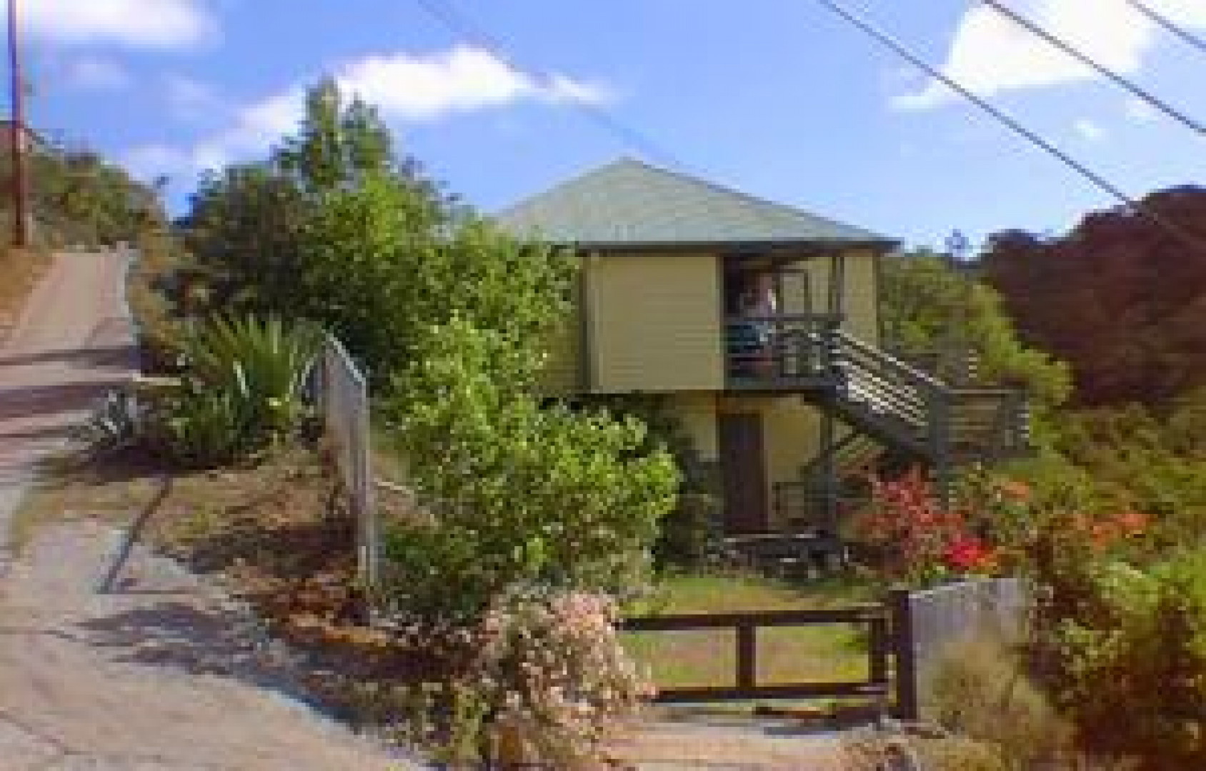 Lovely home in two buildins close to Coral Bay Harbor. Known as 'Gatehouse' in Estate Eden, this home has great short-term rental potential. Very charming with exposed ceiling beams, nice kitchen, mexican tiles in great room, wood floors in the bedrooms. Fully shuttered. Nice view 14,000 gallon cistern, large storage room with washer/dryer. Call CBR 800-569-2417