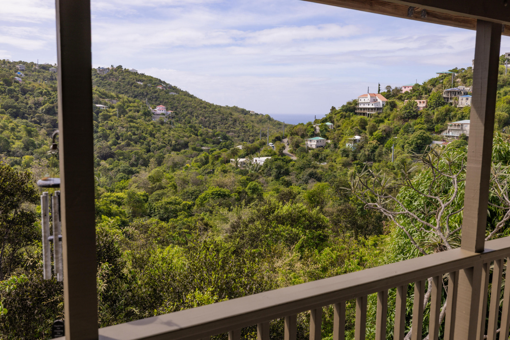 Two unit Cruz Bay home sited on private and lush 1/2 acre lot. Upper level consists of 3 bedrooms/1 bath, full kitchen and covered porch. Lower level consists of 2 bedrooms/1 bath , a second full kitchen and another covered porch. Separate electric meters, two laundry rooms, off street parking, lush valley views and south shore sea views. Masonry cisterns and foundation. Close to town and amenities. Flexibility to configure the property to your liking. Long term tenant requires 90 days notice to vacate. Buyer and Seller to split stamp tax.