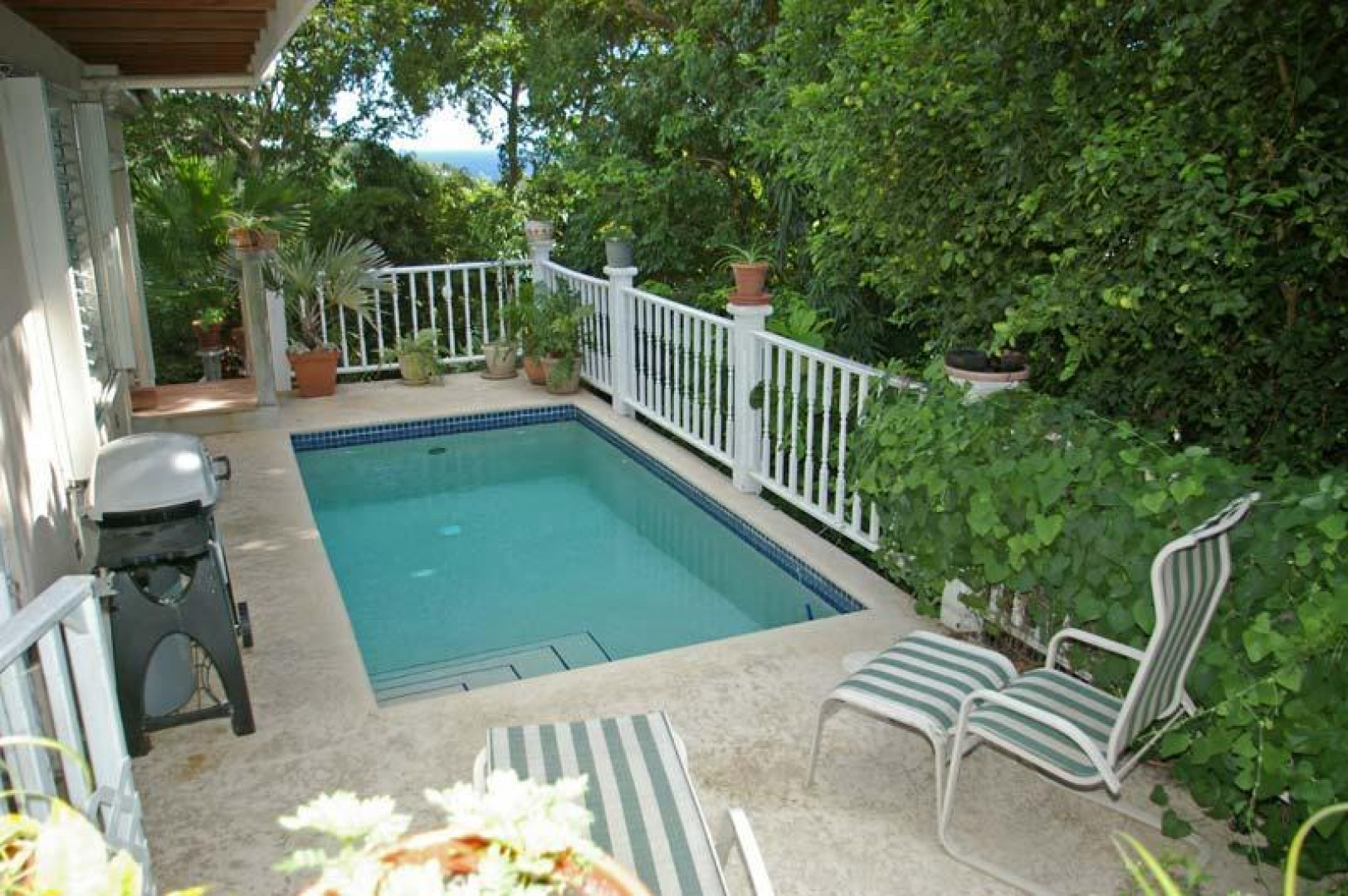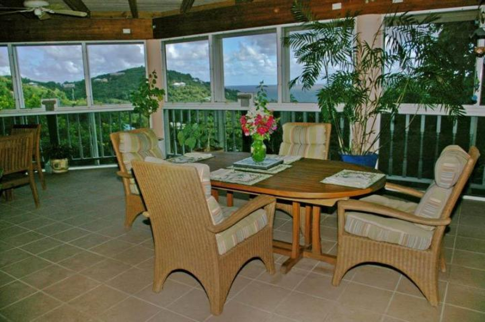 HARTS DELIGHT in Chocolate Hole North is a private and extremely well built masonry home, surrounded by lush landscaping with views of Hart Bay & the Caribbean sea and cooling breezes. The kitchen and great room flow seamlessly into the large screened dining area. A private plunge pool is located off the air-conditioned master bedroom suite. A guest suite is off the great room. The oversized 3rd bedroom suite is located on the lower level, with a separate entrance, and could become an income producing unit. A jumbo storage/laundry room has potential to become a fourth bedroom. Additional features: low electric bills with NET METERING (16 solar panels), fully shuttered, 5K generator, custom stone BBQ, and 12K gallon grey water cistern. Buyer & Seller shall equally split Stamp Tax.