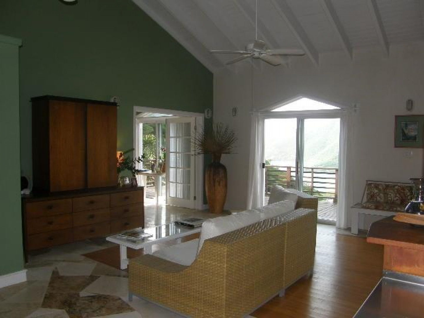 Sail View is a custom crafted and immaculately maintained 3 bedroom 3.5 bath masonry villa overlooking CoralBay Harbor. Sail View is sited on a professionally landscaped private and lush 1/2 acre parcel. Great attention to detail including custom made furniture and fixtures, art murals, bamboo and travertine tiled interior floors, slate tile exterior walkways, stainless steele kitchen appliances, newly installed solar panels and Caribbean style furnishings and decor. Plenty of room to add a pool along with an option to build a separate cottage. Great property as an owner residence orrental villa in the quaint subdivision of Mill Vista.